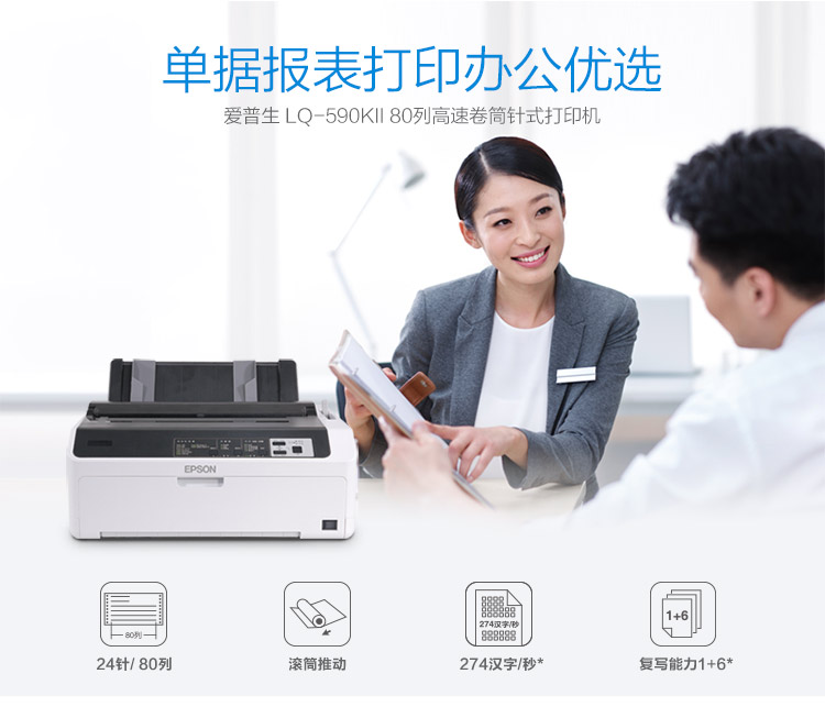 愛普生(EPSON) LQ-590KII 高速針式打印機 80列卷筒24針 單據(jù)報表打印
