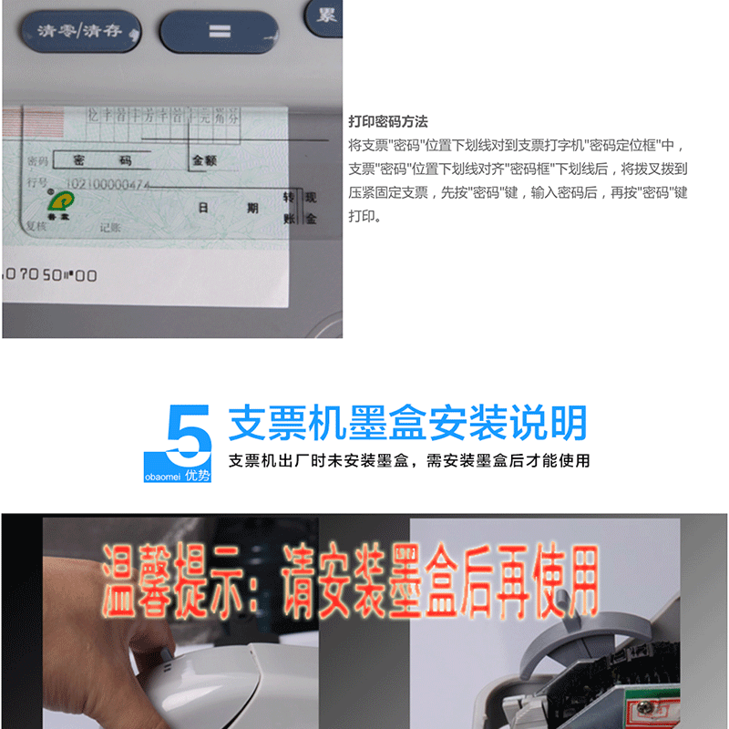 可打印支票大小寫金額、日期和密碼。操作簡單!打印清晰!防止涂改支票! ?
