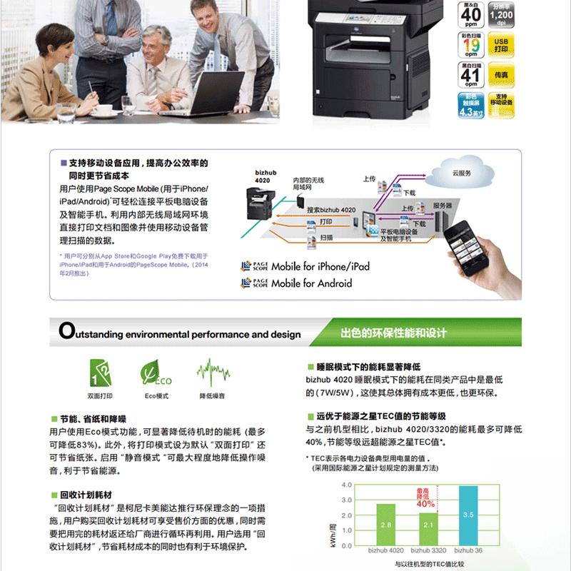 四合一多功能,自動(dòng)雙面打印,40頁(yè)/分鐘。 ?