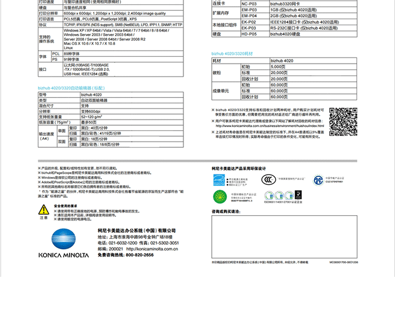柯尼卡美能達(dá)(KONICA MINOLTA) bizhub4020 黑白多功能激光A4一體機(jī)
