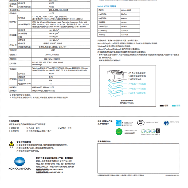柯尼卡美能達(dá)(KONICA MINOLTA) bizhub4000P 黑白激光高速打印機(jī)