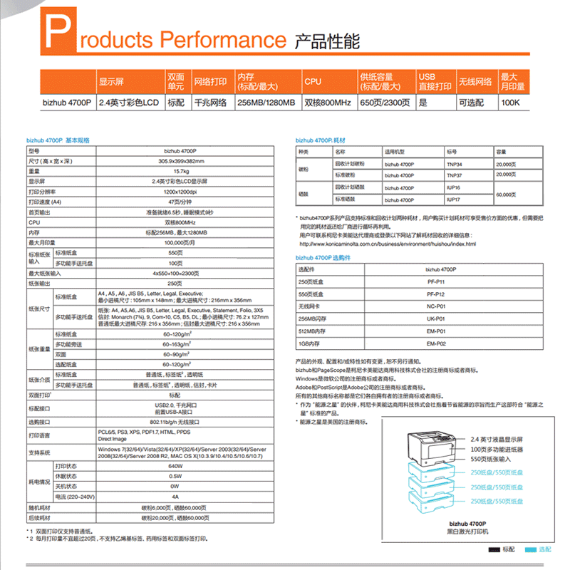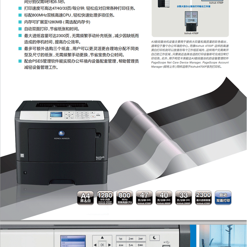 柯尼卡美能達(dá)(KONICA MINOLTA) bizhub4700P 黑白高速激光打印機(jī)
