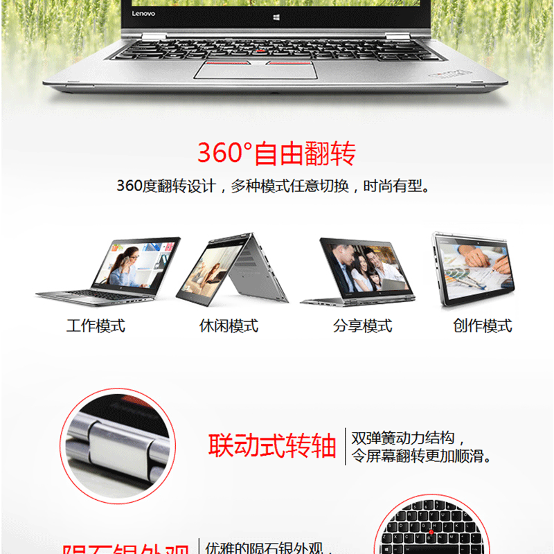 聯想(ThinkPad) S3(20G1A006CD) 14英寸翻轉觸控筆記本電腦(128GB固態(tài)盤+1T硬盤)