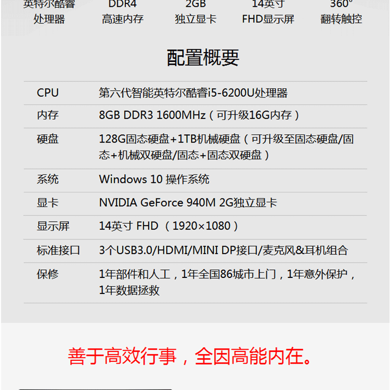 i5-6200U 8G內存 1TB機械硬盤+128G固態(tài)混合硬盤 14英寸FHD高清顯示屏 ?