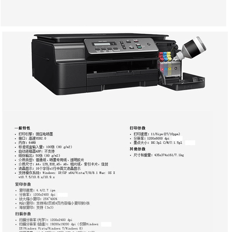 兄弟(brother) DCP-T300 墨倉式 彩色噴墨多功能一體機(打印、復(fù)印、掃描)