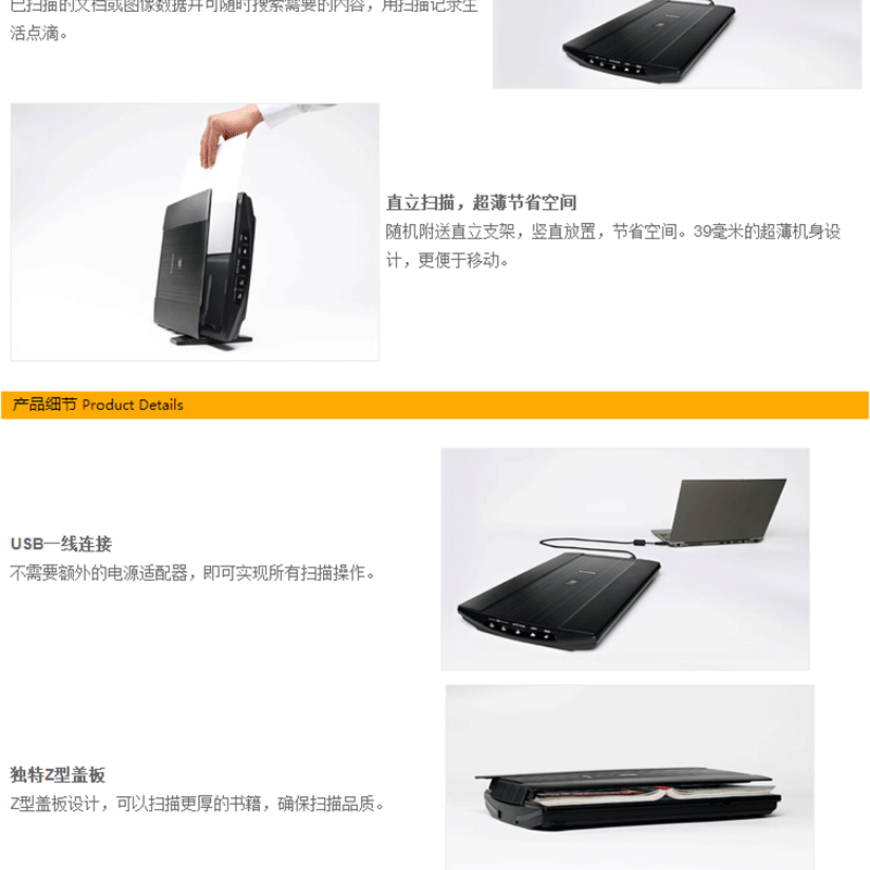 直立掃描節(jié)省空間 USB連接無(wú)需電源適配器 Z型蓋板可掃描厚文件 ?