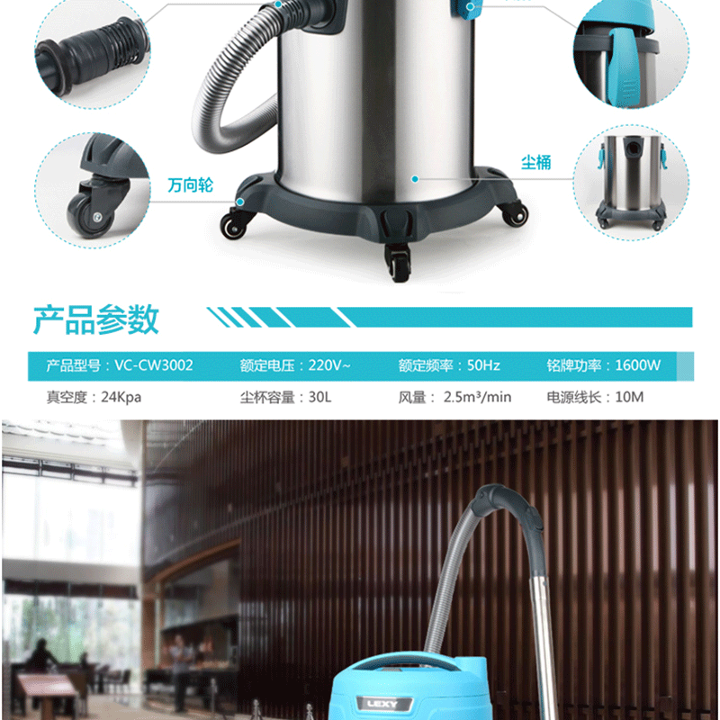 萊克(LEXY) VC-CW3002 商用桶式干濕兩用吸塵器