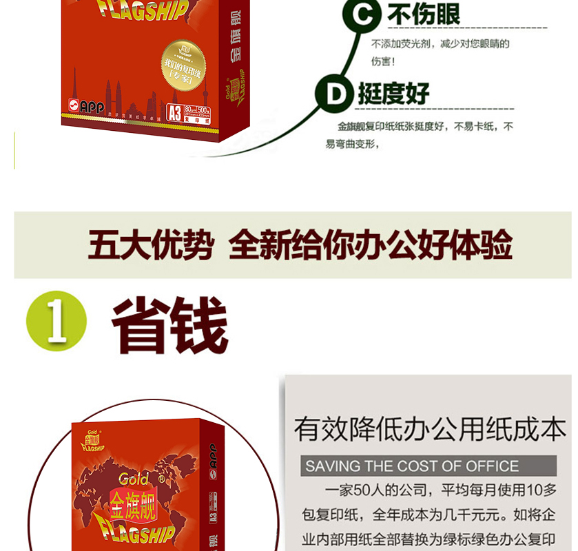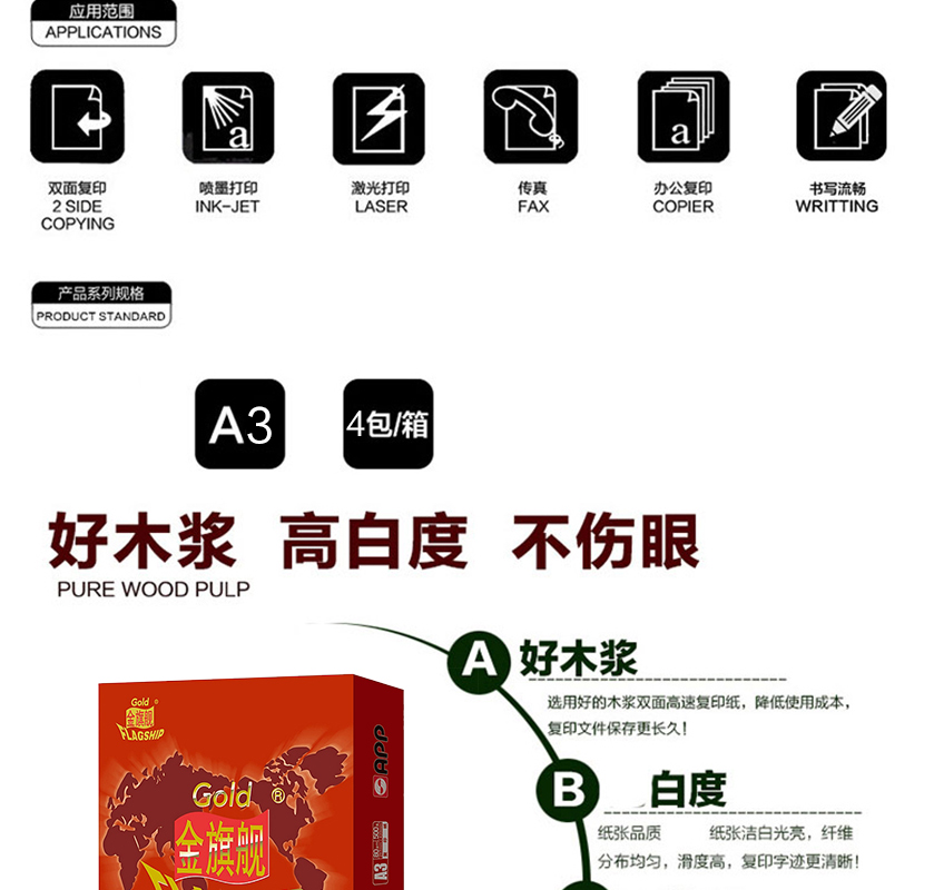 藍(lán)旗艦 A3 70G 五星藍(lán)復(fù)印紙 500張/包(銷(xiāo)售單位:箱) (4包/箱)