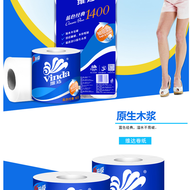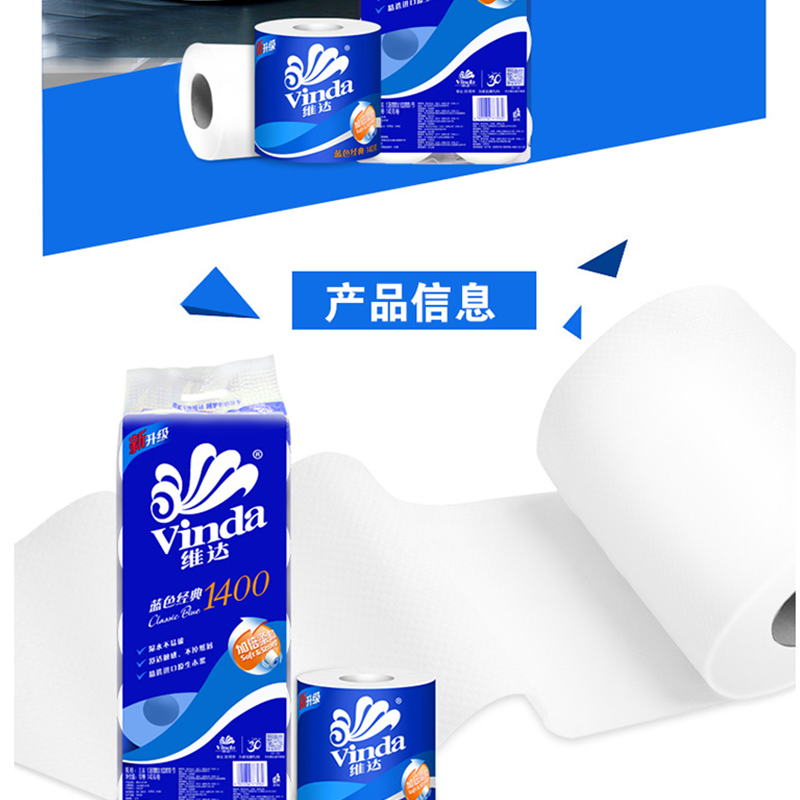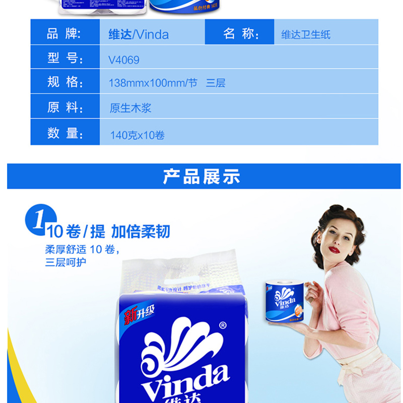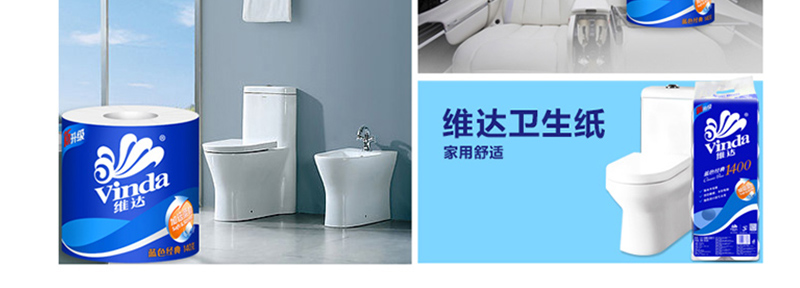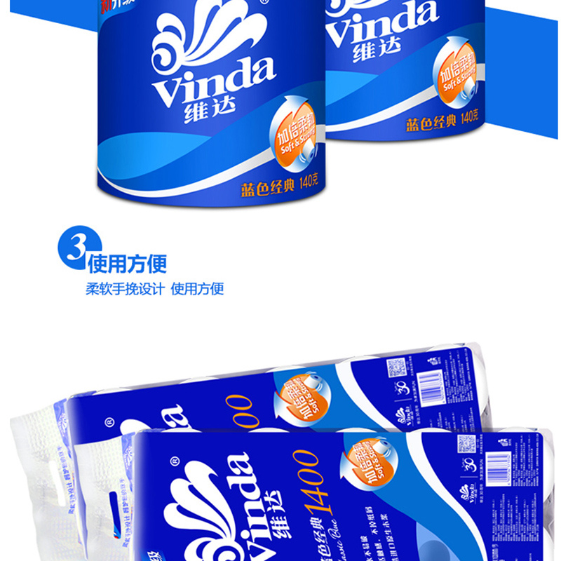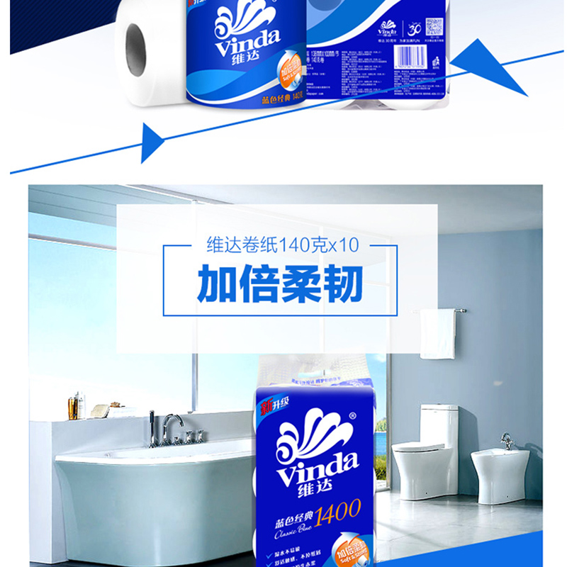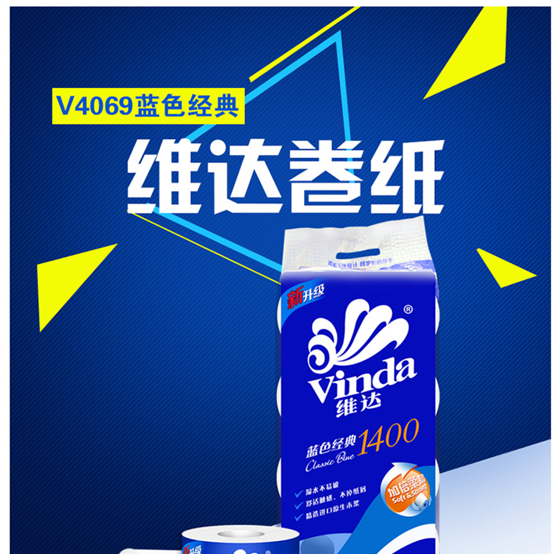 維達(dá)(Vinda) V4069 3層藍(lán)色經(jīng)典卷紙衛(wèi)生紙廁紙140g*10卷