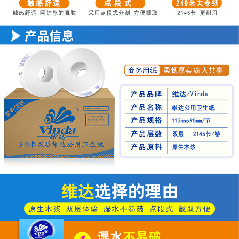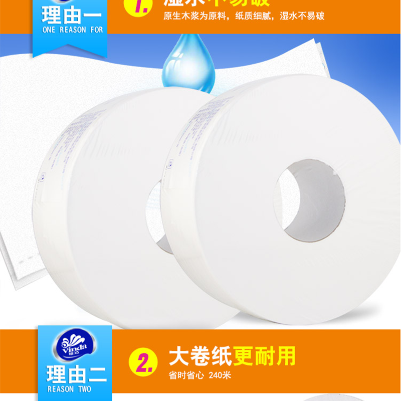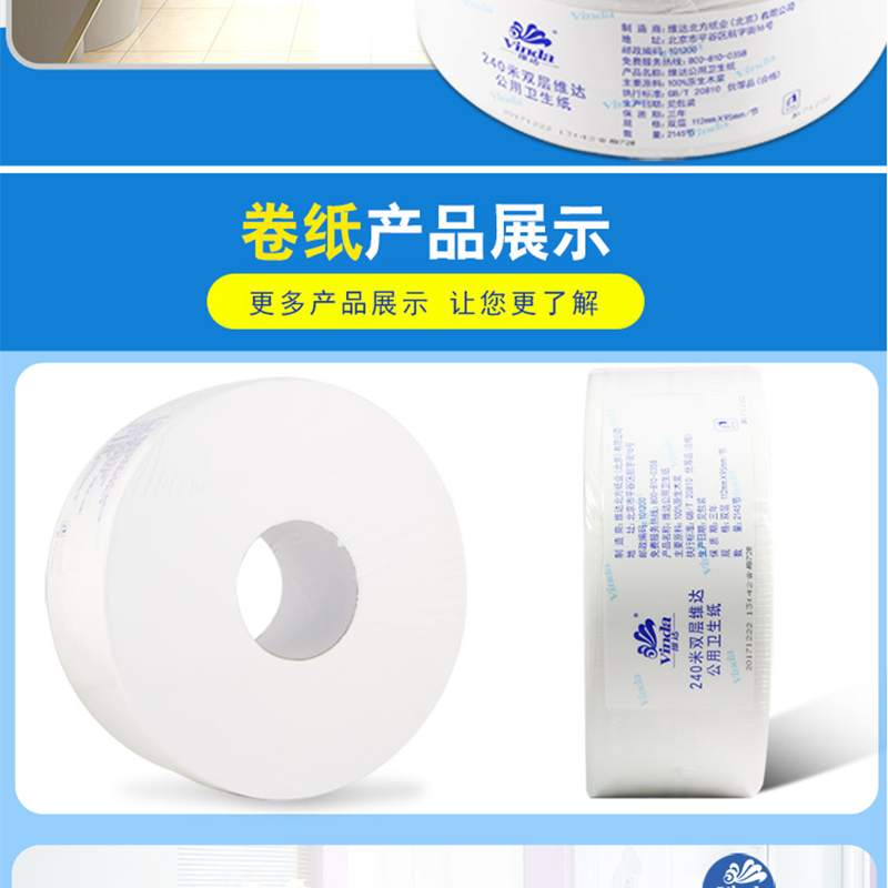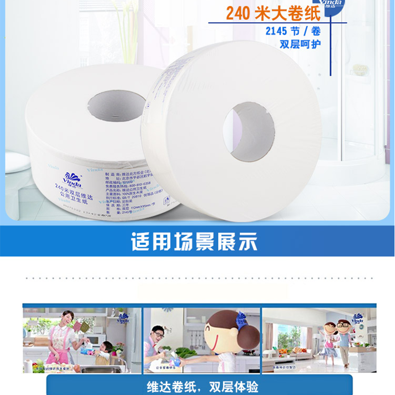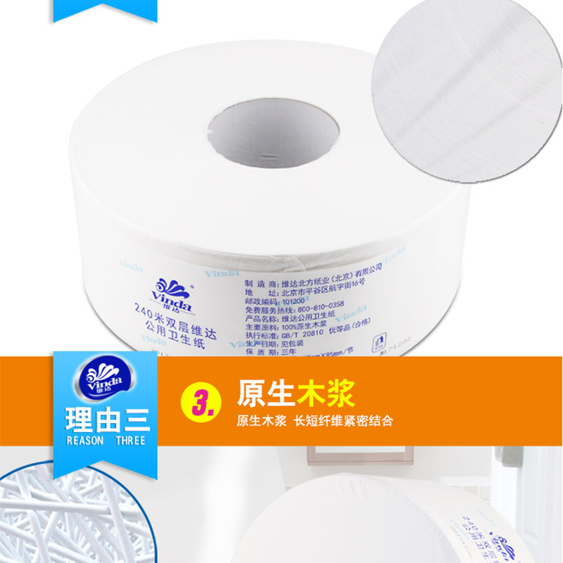 維達(Vinda) V4035-3 240米雙層特惠裝公用衛(wèi)生紙大盤紙 12卷/箱