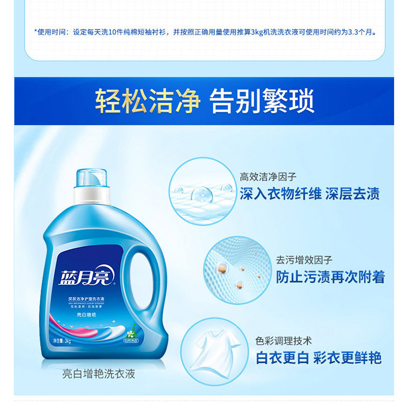 藍月亮(Bluemoon) 亮白增艷洗衣液(自然清香)2kg/瓶