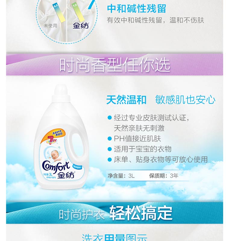 金紡(COMFORT) 衣物護(hù)理劑 柔順劑 純凈溫和3L