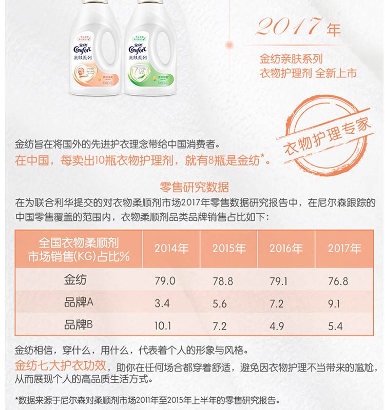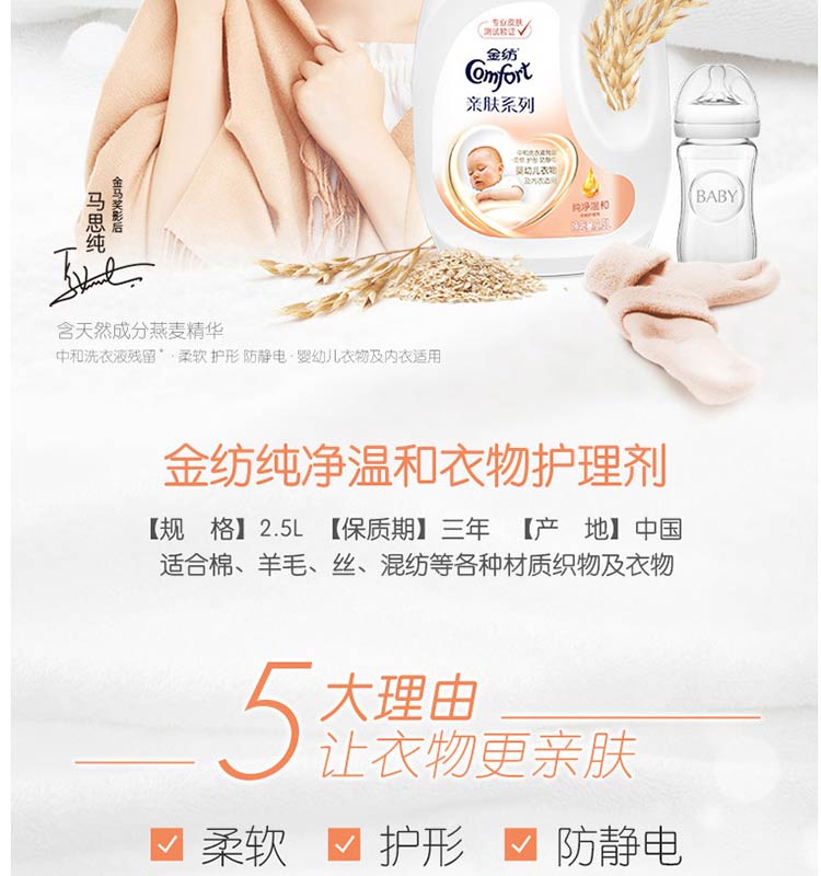 金紡(COMFORT) 柔順劑 衣物護理劑 柔軟護型防靜電 新純凈溫和2.5L