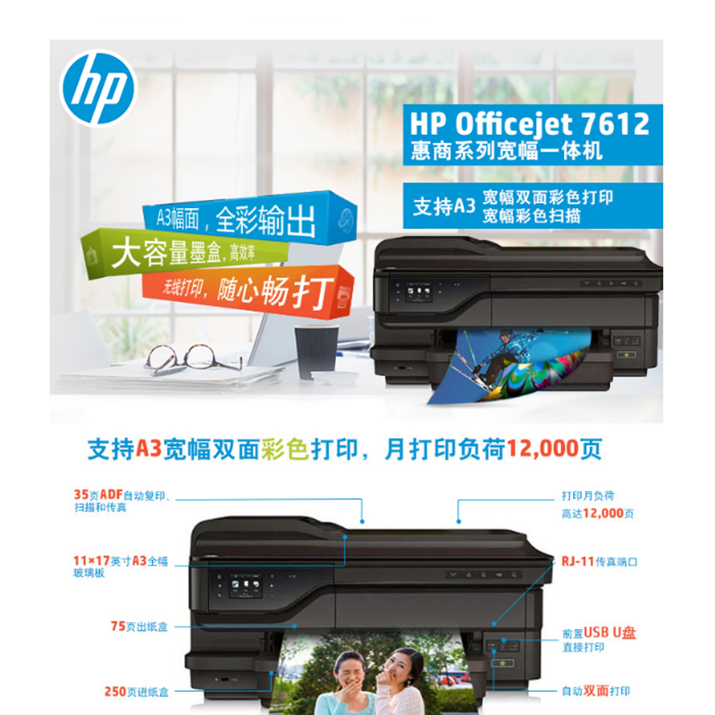 惠普(HP) Officejet 7612 惠商系列寬幅一體機 噴墨一體機(打印/復(fù)印/掃描/傳真)