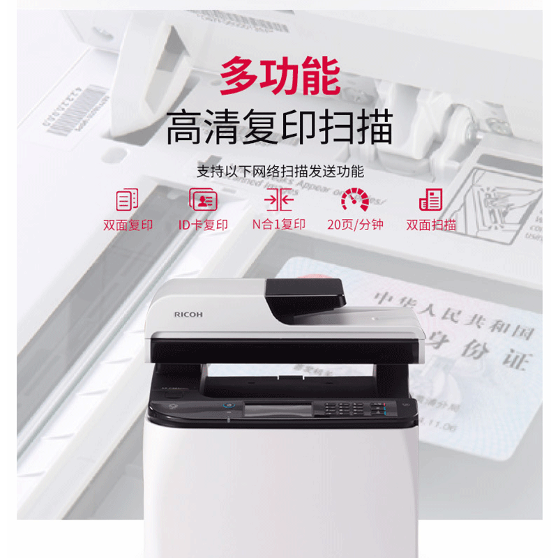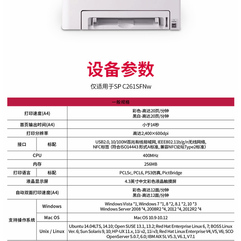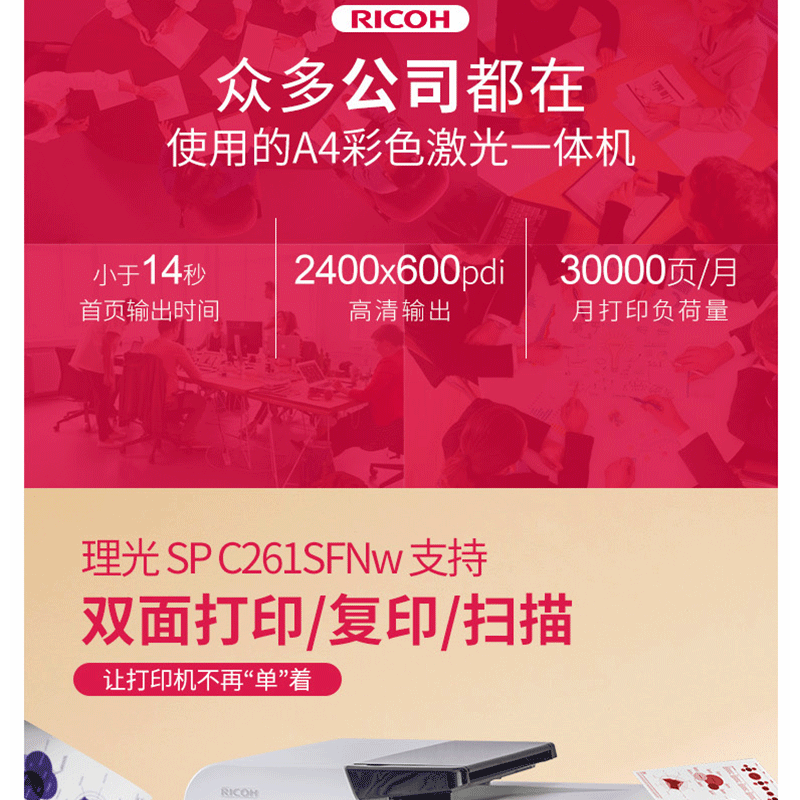 理光(Ricoh) SP C261SFNw A4彩色激光多功能一體機(打印/復(fù)印/掃描/傳真)