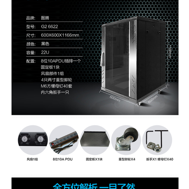 圖騰(TOTEN) G2.6622 網(wǎng)絡機柜 前門鋼化玻璃后門鈑金門 19英寸標準