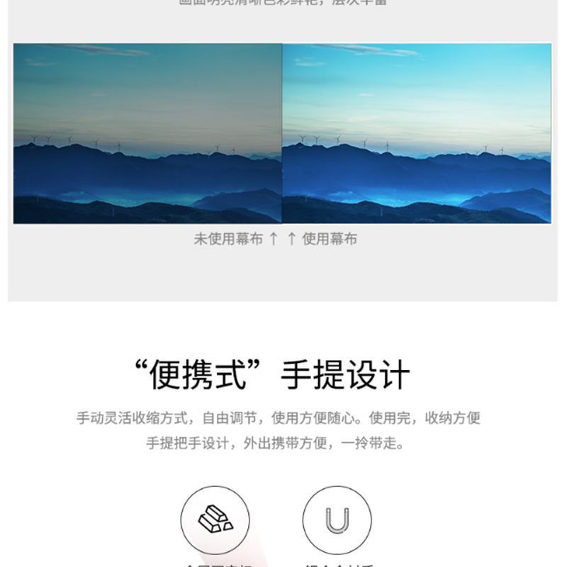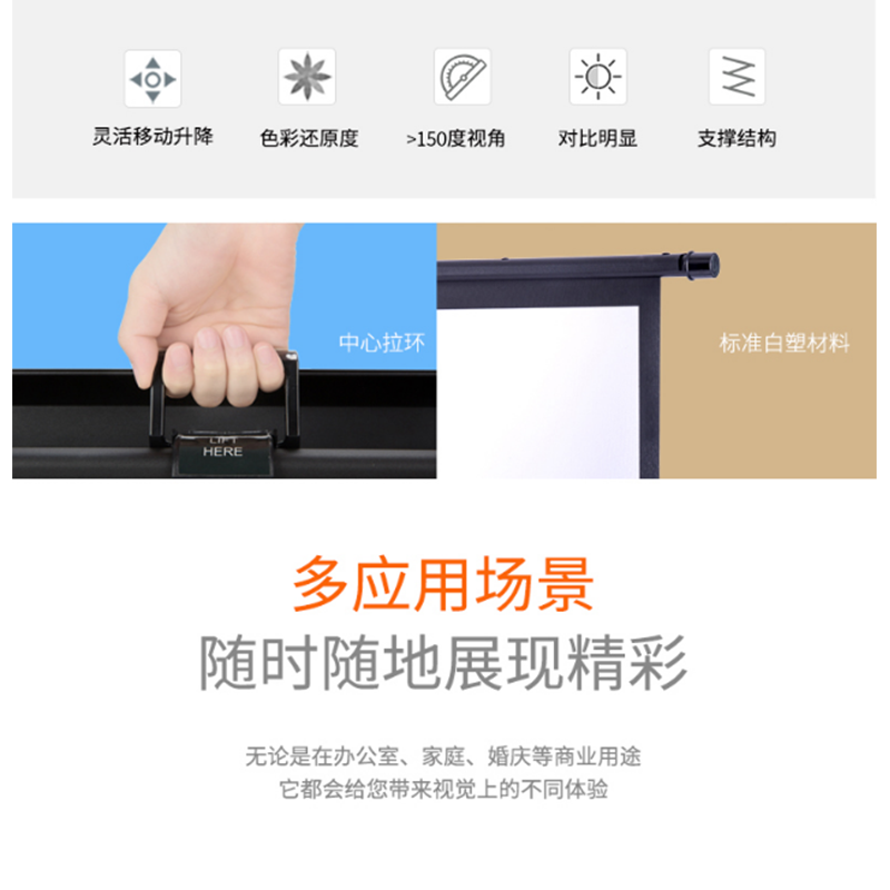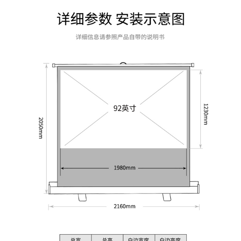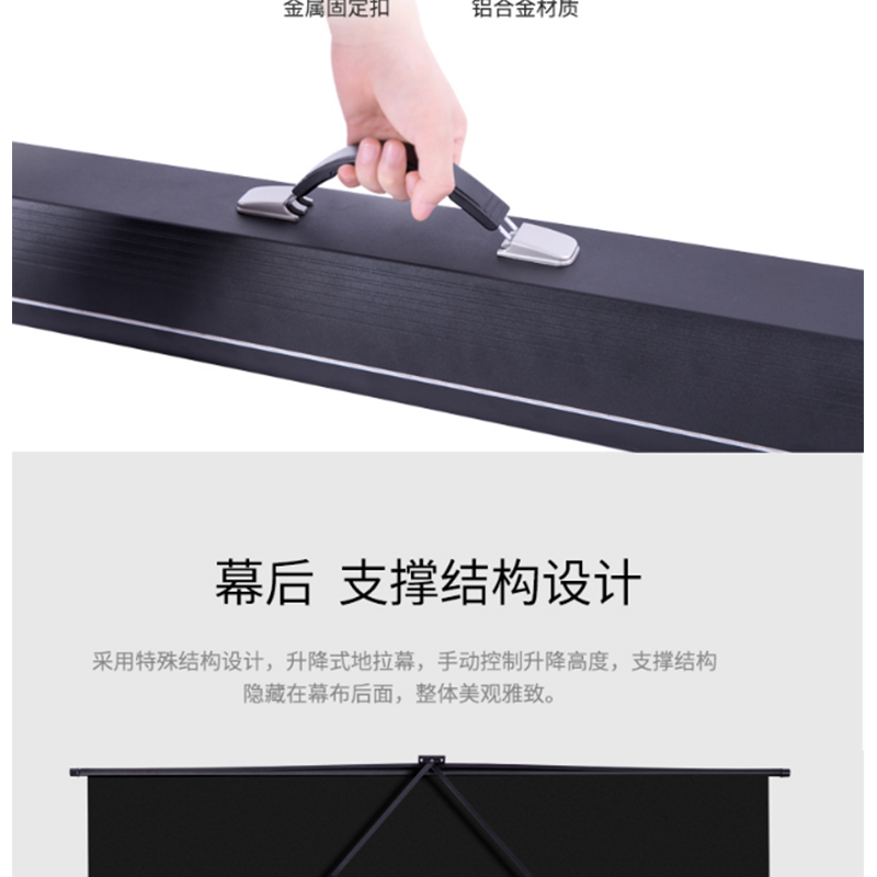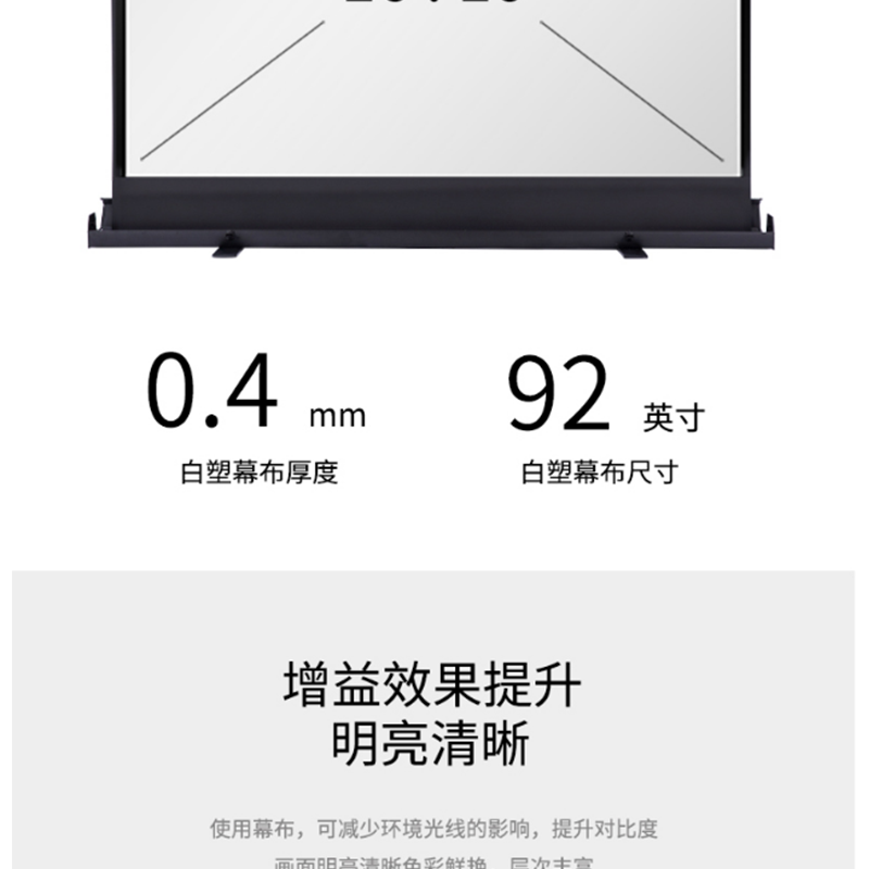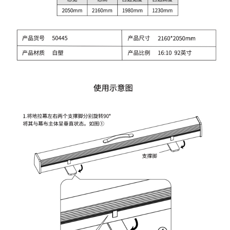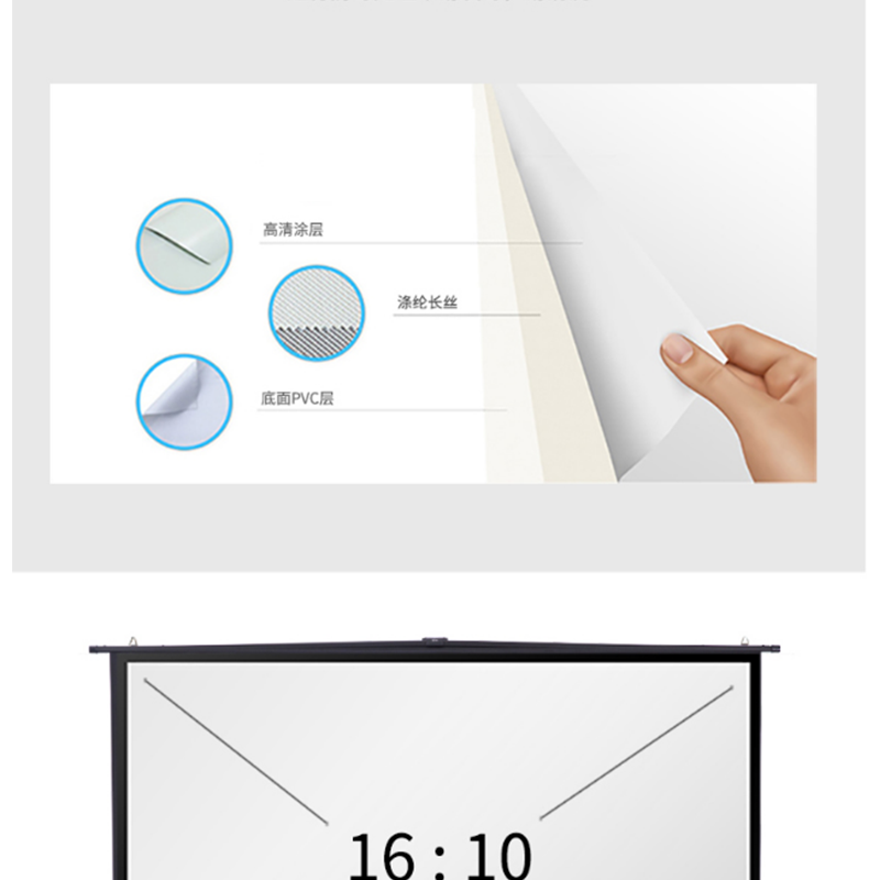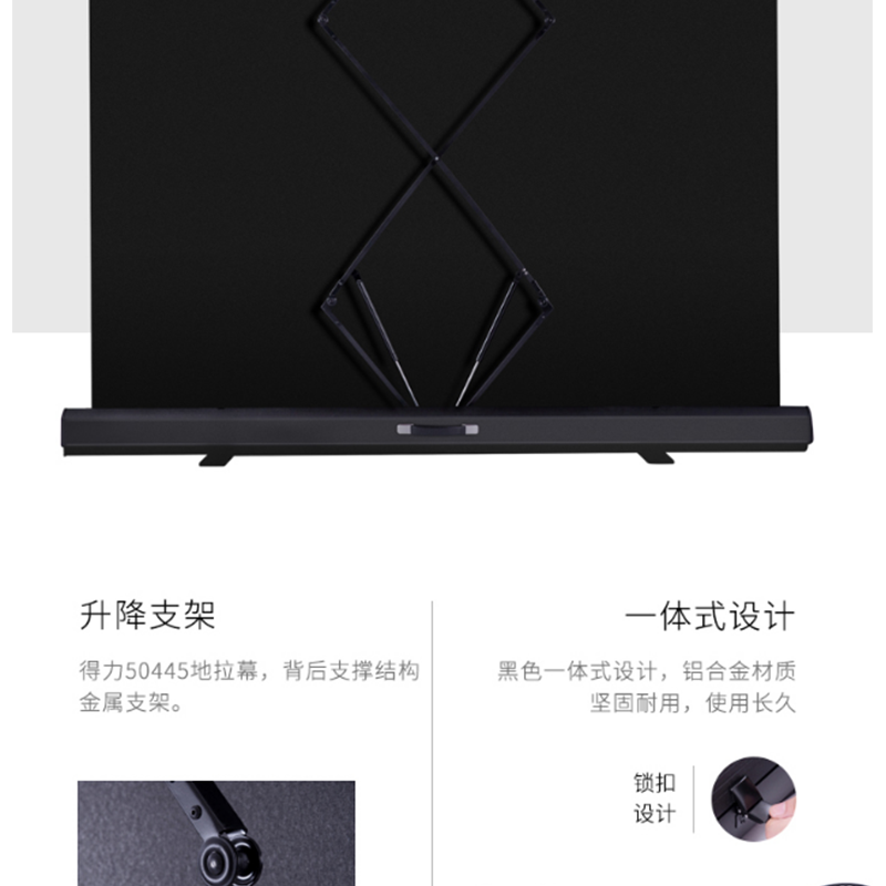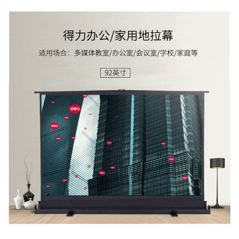 得力(deli) 50445 92英寸 16:10地拉式免安裝投影幕布 家用可收縮投影儀幕布