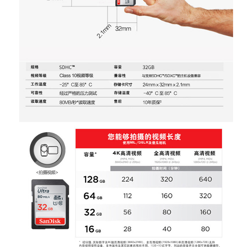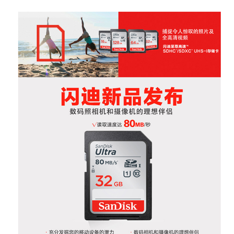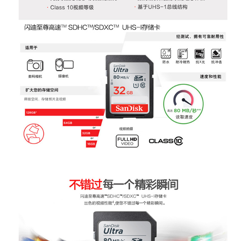 閃迪(SanDisk) 32GB 讀速80MB/s 至尊高速SDHC UHS-I存儲卡 Class10 SD卡