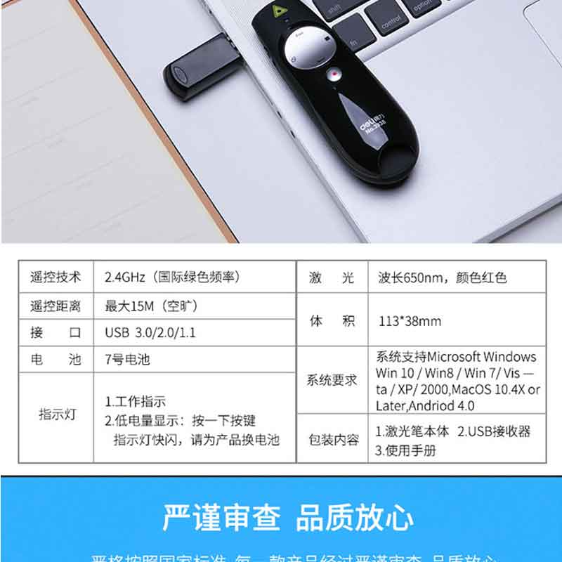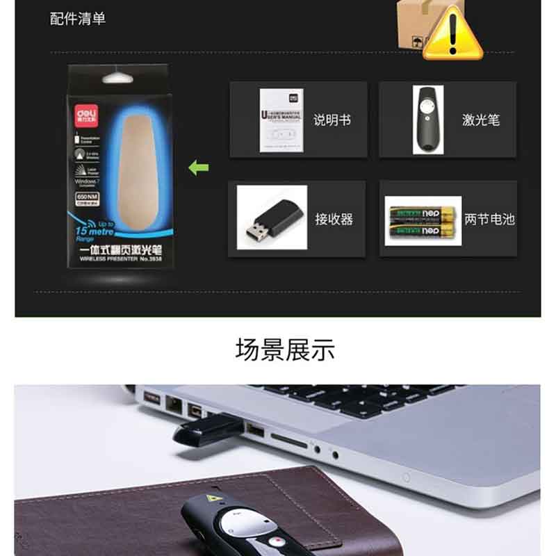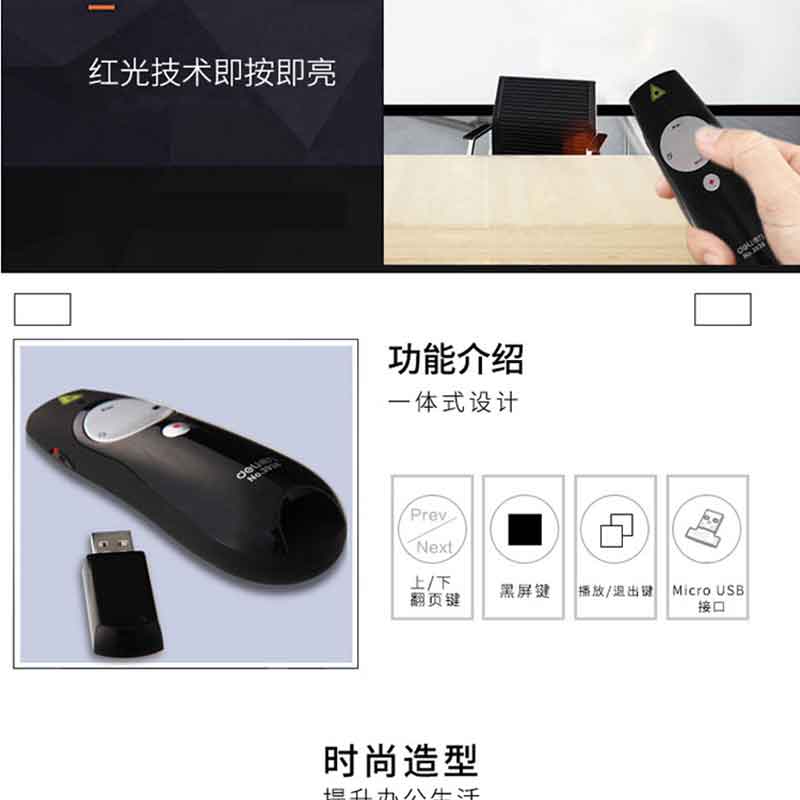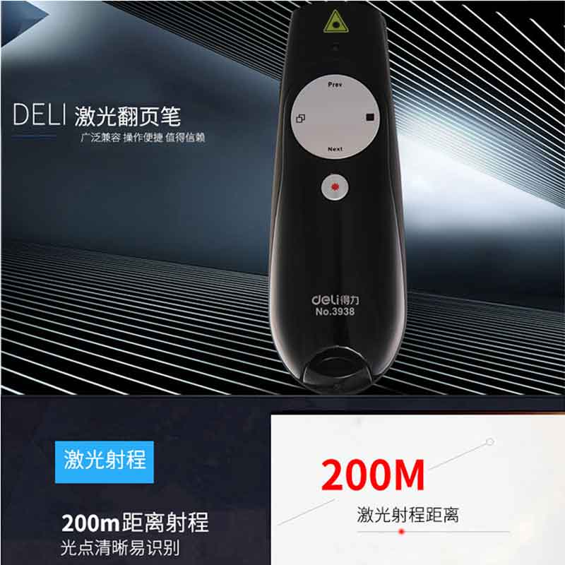 得力(deli) 3938 翻頁筆/PPT翻頁筆/激光翻頁筆/無線演示器 一鍵全屏/黑屏 紅光