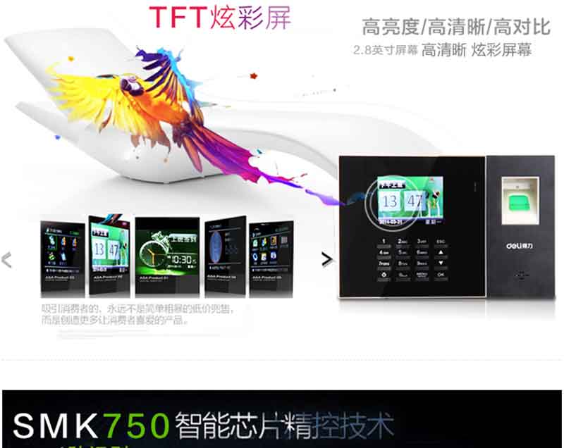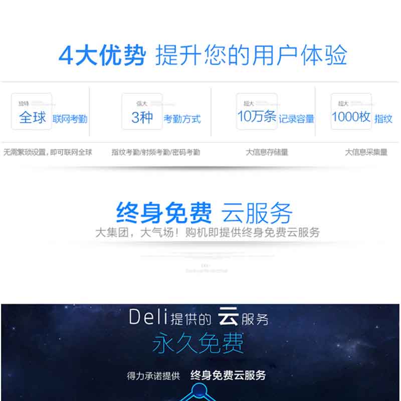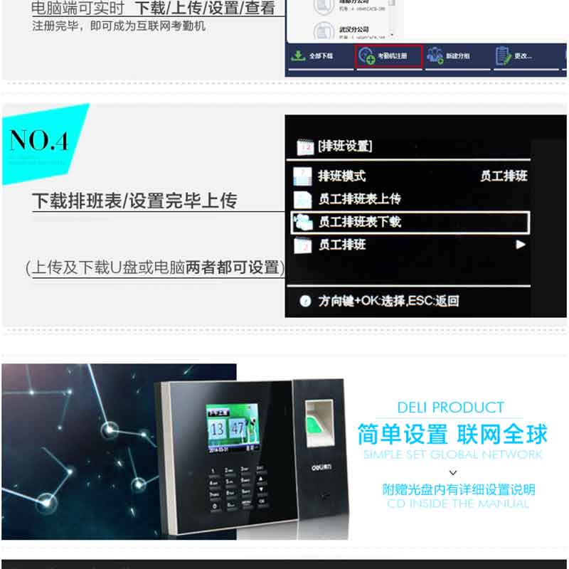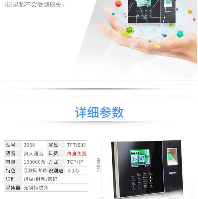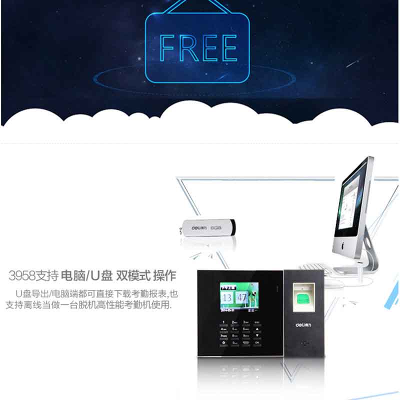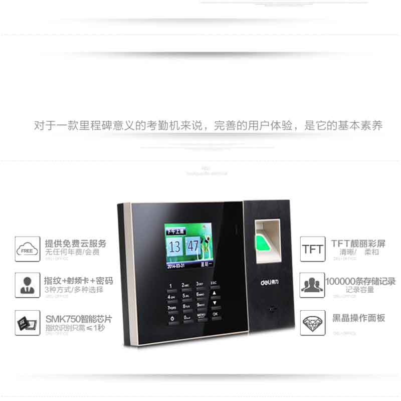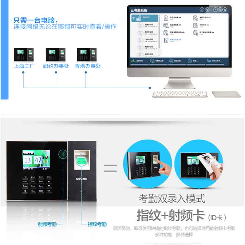 得力(deli) 3958 智能互聯(lián)網(wǎng)考勤機 指紋/ID射頻卡雙模打卡機 異地/分店考勤統(tǒng)一管理