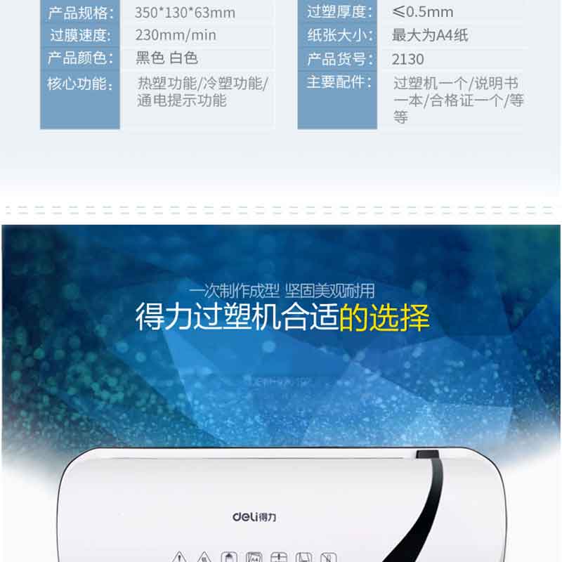 得力(deli) 2130 塑封機 簡潔時尚 靜音型