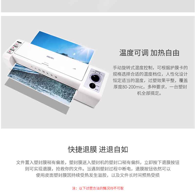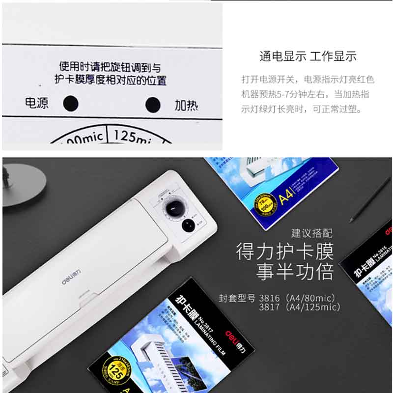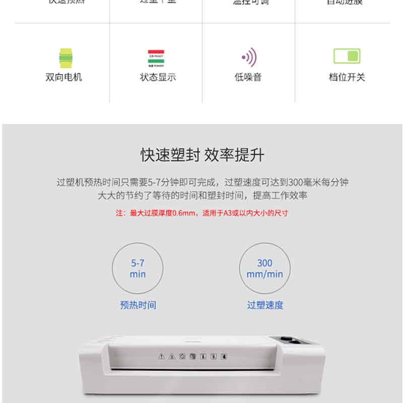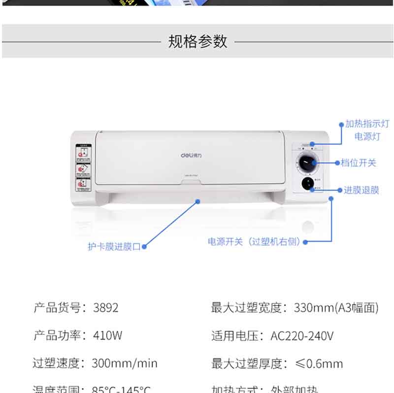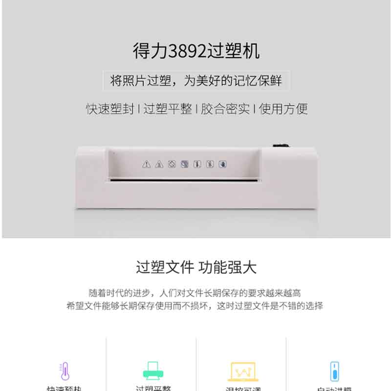 得力(deli) 3892 適用A3靜音設(shè)計(jì)正反轉(zhuǎn)功能塑封機(jī)/過(guò)塑機(jī) 冷裱/熱裱 灰色