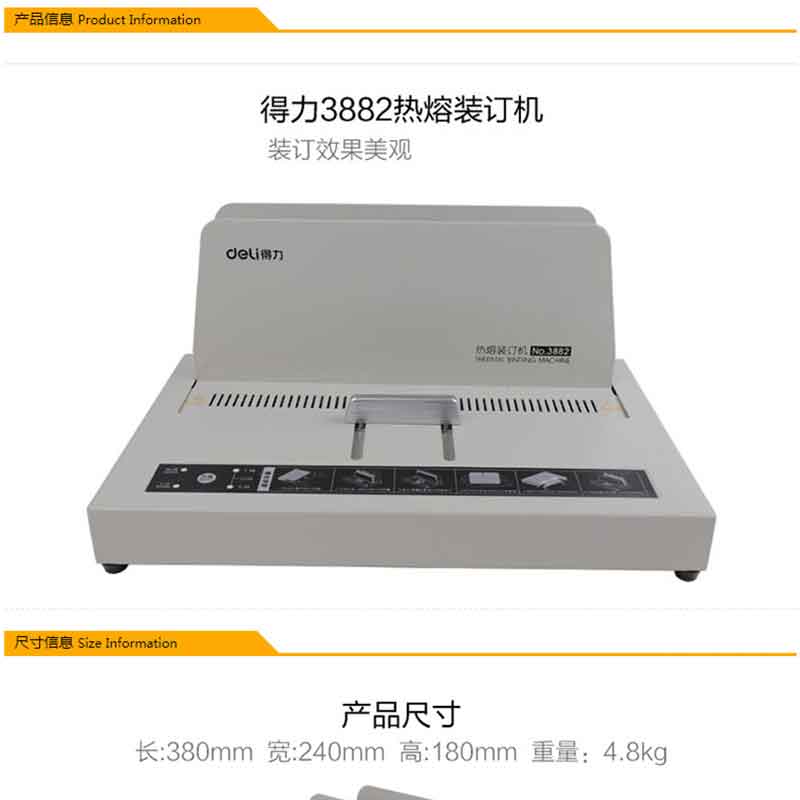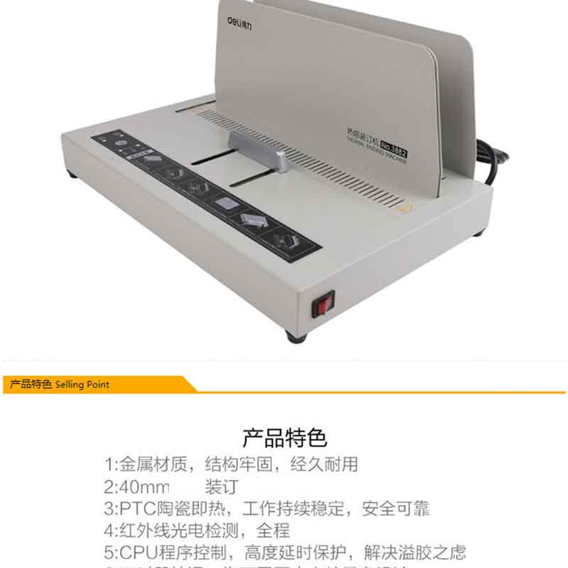 得力(deli) 14671 熱熔裝訂機合同財務會計憑證裝訂機封套膠裝機全自動標書 熱熔裝訂機(可裝訂40mm)