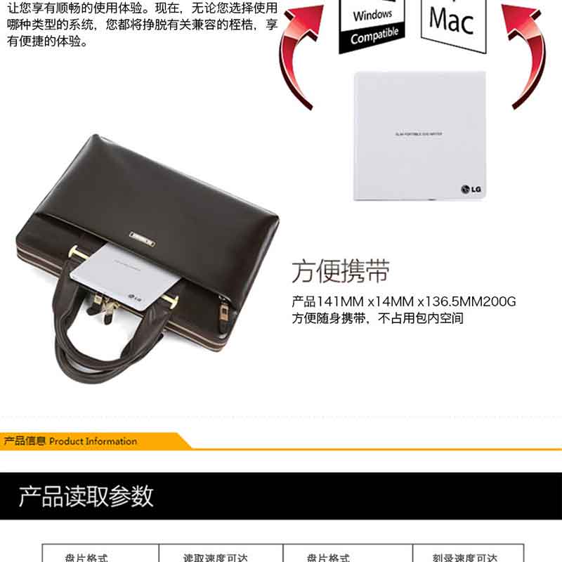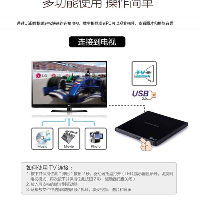 LG GP65NB60 8倍速 USB2.0接口 外置DVD光驅(qū)刻錄機(jī) 黑色 (兼容windows 8和MAC操作系統(tǒng))