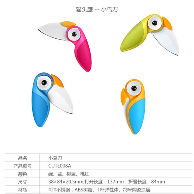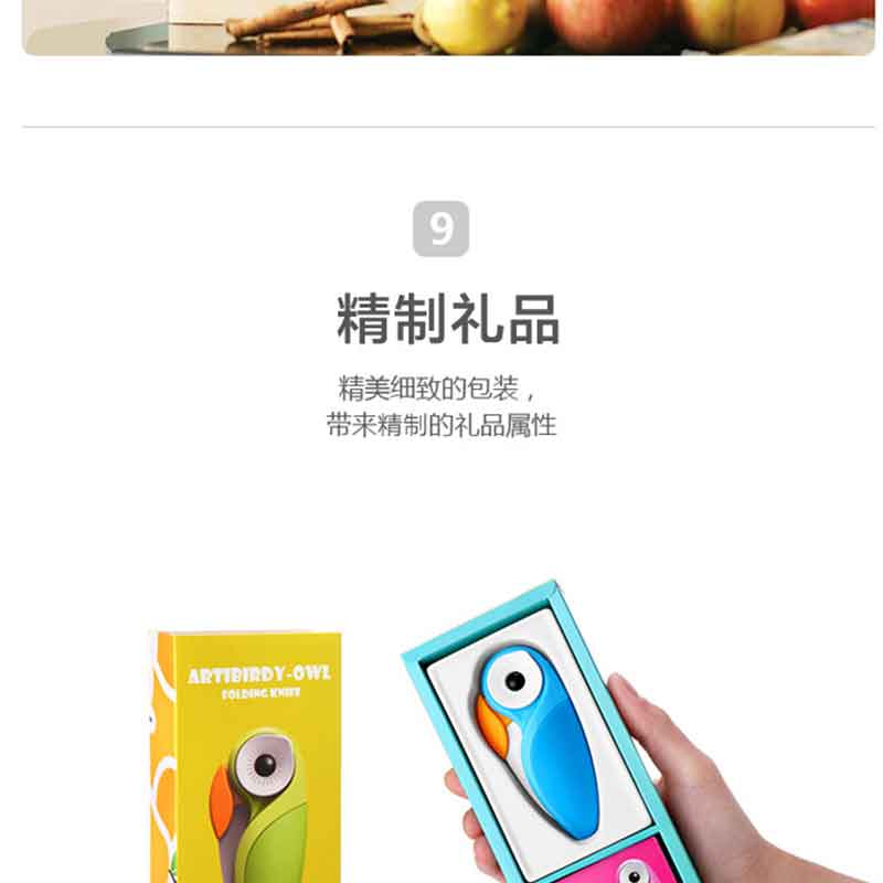 Artiart CUTE018A 折疊削皮水果刀 貓頭鷹小刀(顏色隨機)