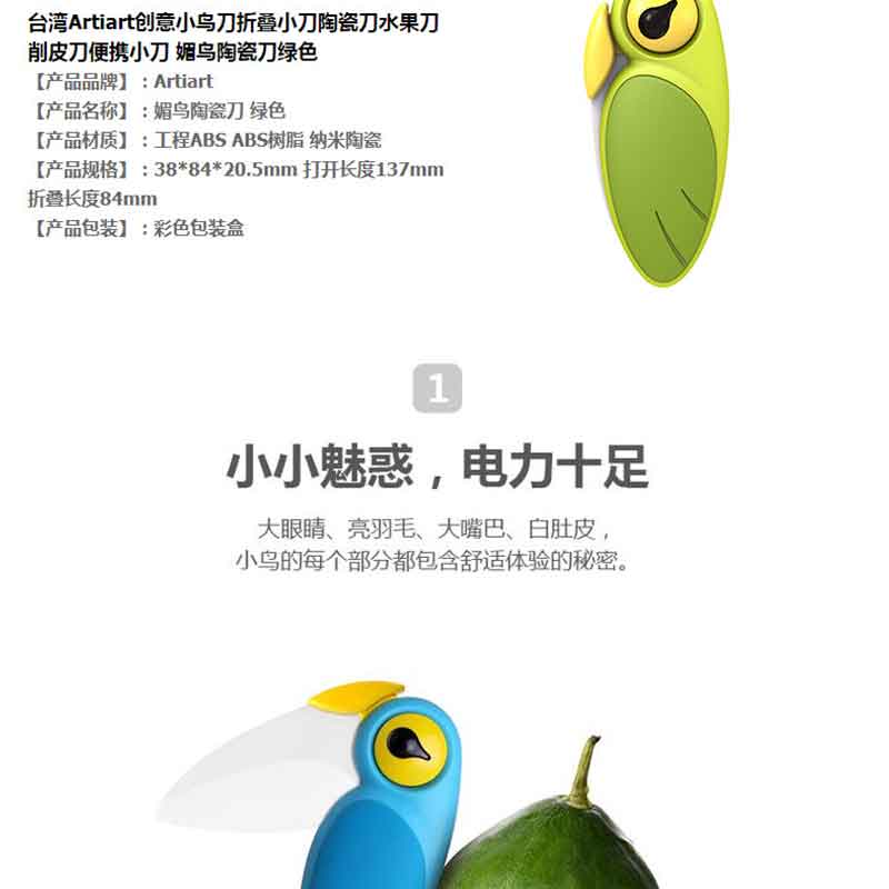 Artiart CUTE024A 創(chuàng)意小鳥折疊小刀/水果刀 媚鳥陶瓷刀(顏色隨機(jī))