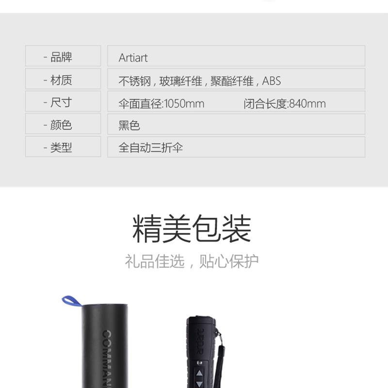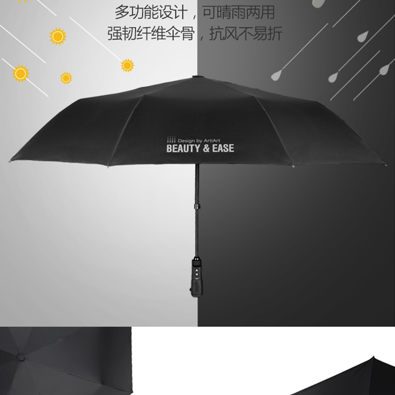 Artiart RAIN007-Black 指揮官電動傘 全電動開關(guān)折疊防風 黑色