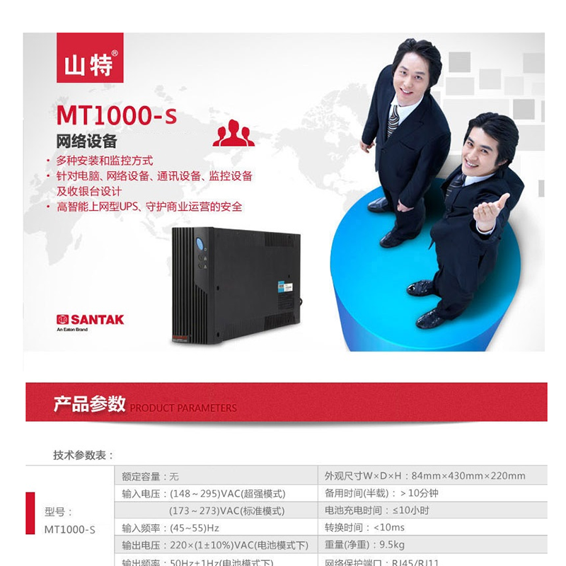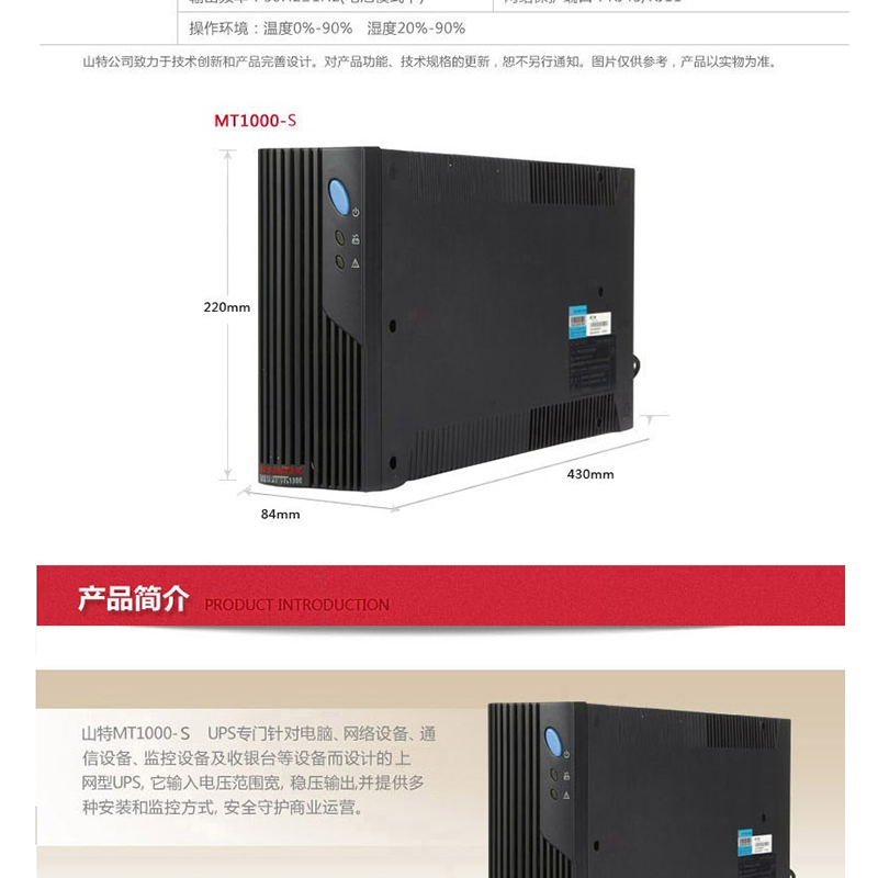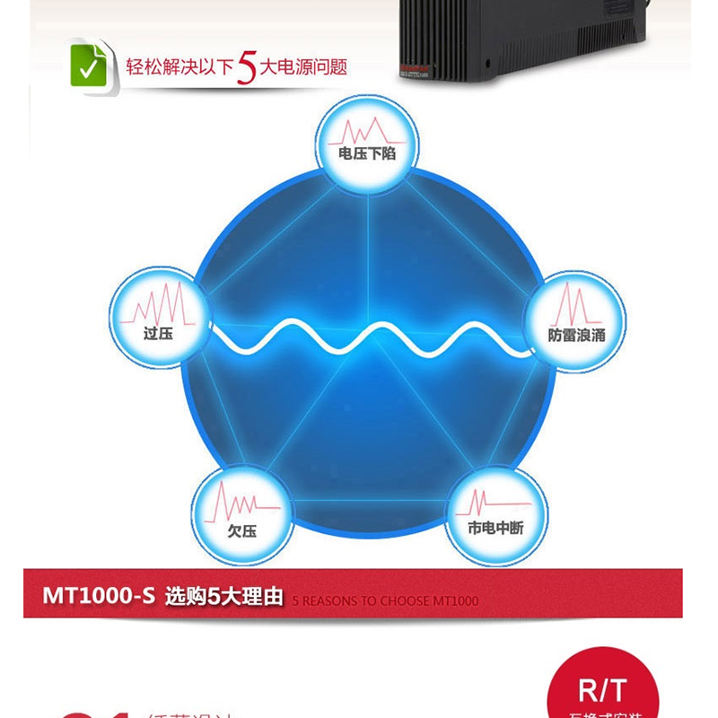 山特(SANTAK) MT1000S 后備式UPS不間斷電源1KVA/600W