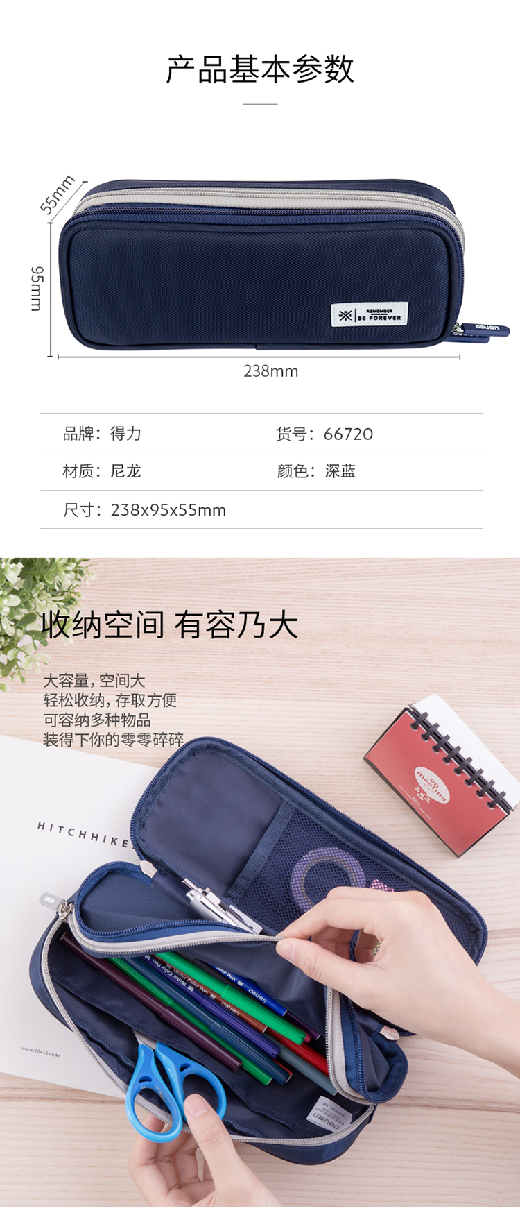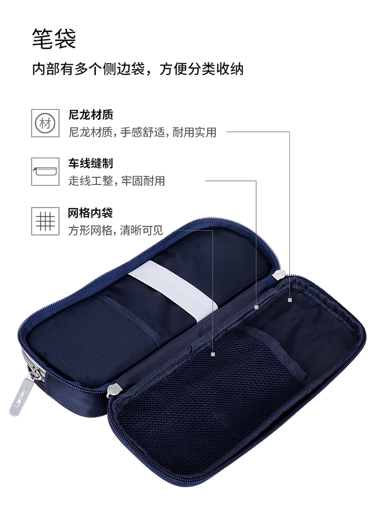 得力(deli) 66720 多功能多層筆袋大容量鉛筆收納袋 星空藍(lán)