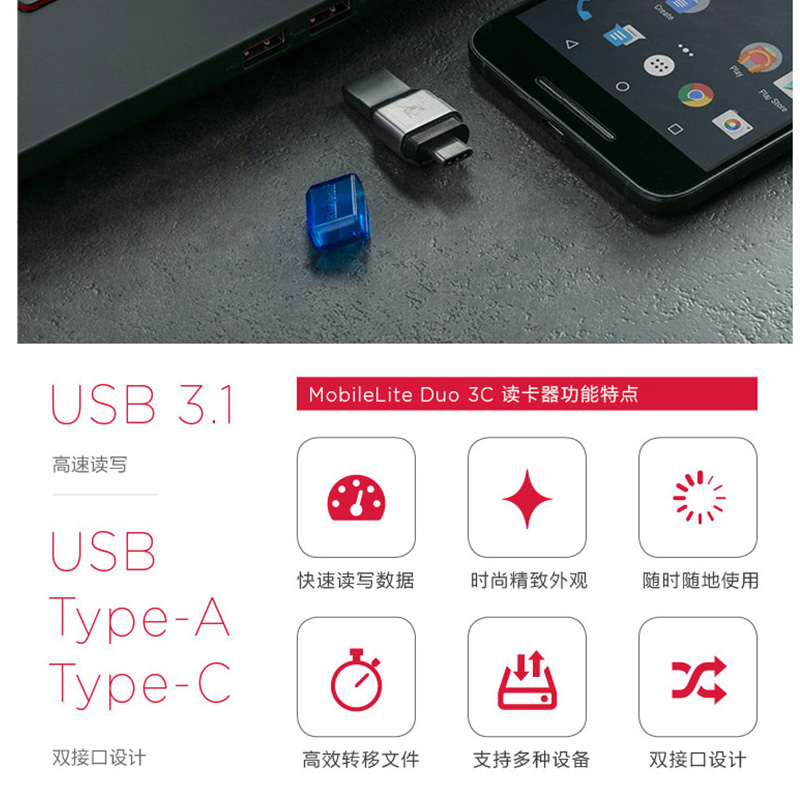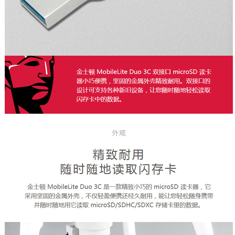 金士頓(Kingston) FCR-ML3C USB 3.0 TF(Micro SD)多功能讀卡器