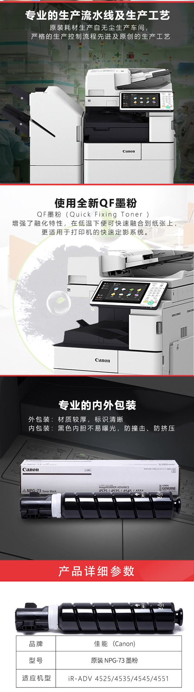 佳能(Canon) NPG-73BK 黑白復(fù)印機(jī)墨粉 黑色