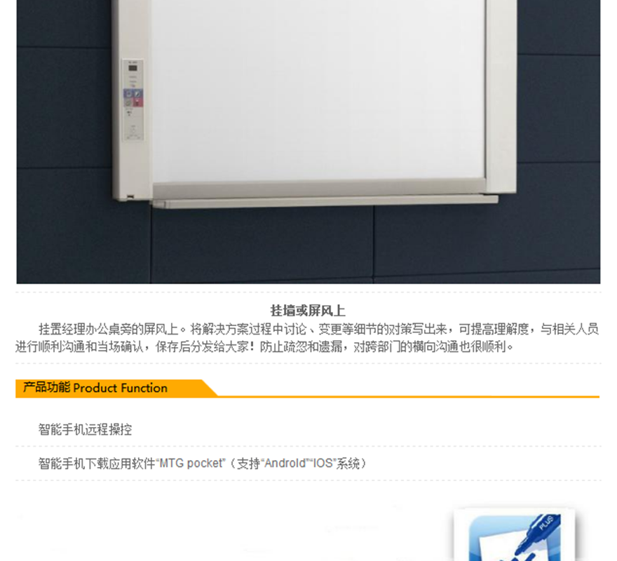 書(shū)寫(xiě)面積:900x600mm(雙面),噴墨打印/可接激光,16色輸出,256色U盤(pán)存儲(chǔ),USB插槽,采用LED光源,長(zhǎng)壽、環(huán)保、節(jié)能。(超薄、精巧、環(huán)保、個(gè)性),具有網(wǎng)絡(luò)存儲(chǔ)功能。 ?