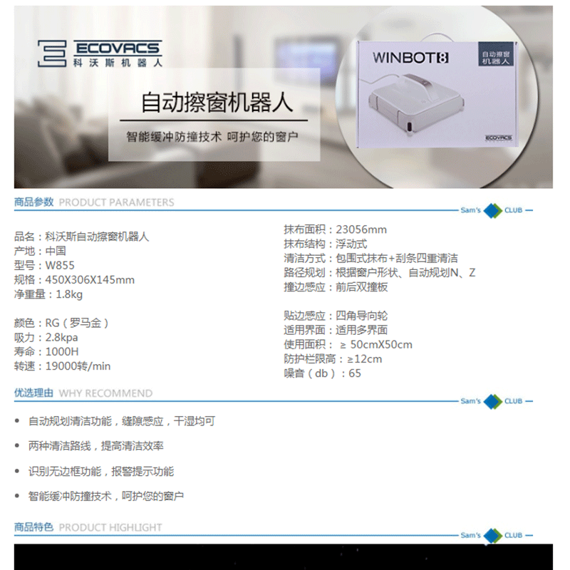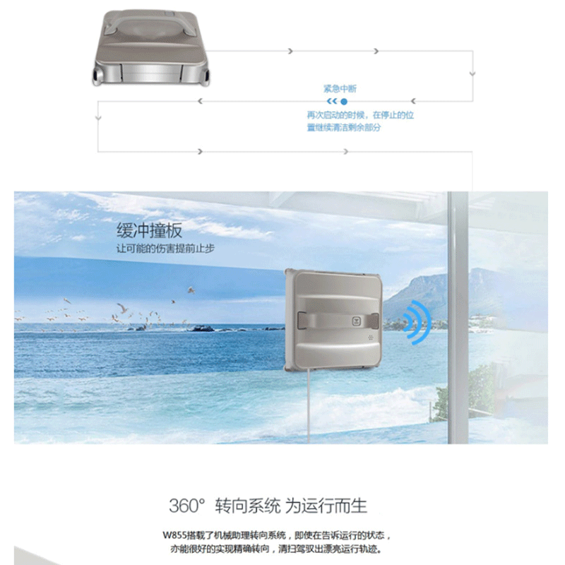 科沃斯(Ecovacs) W855-RG 自動(dòng)擦窗機(jī)器人(羅馬金)