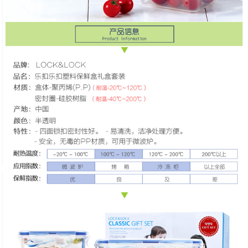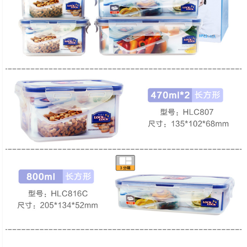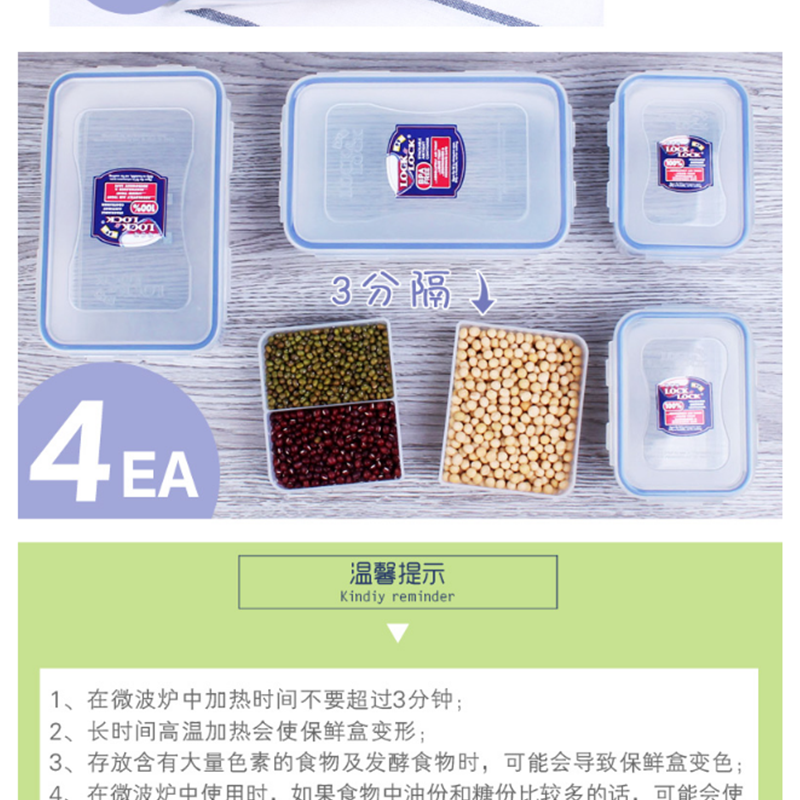 樂扣樂扣(locklock) HPL817S002 塑料保鮮盒套裝 4件套便當飯盒