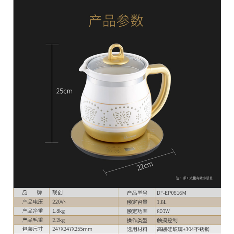 聯(lián)創(chuàng)(Lianc) DF-EP0816M 多功能陶瓷電熱水壺/花茶壺/煮茶器 養(yǎng)生壺 1.8L