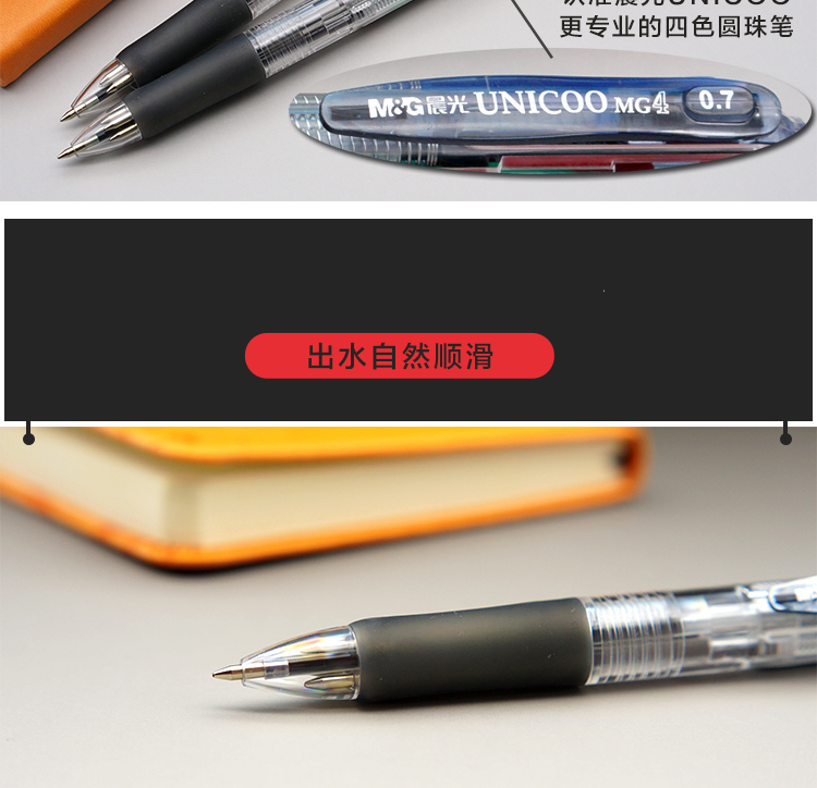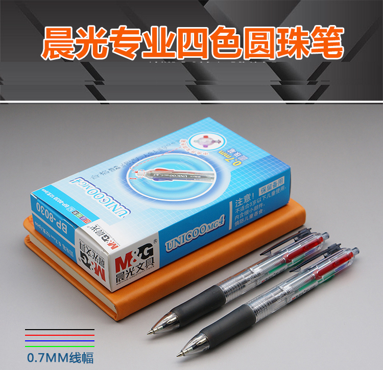 晨光(M&G) BP8030 四色子彈頭按動(dòng)圓珠筆 多功能中油筆原子筆0.7mm,12支/盒