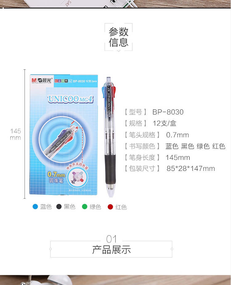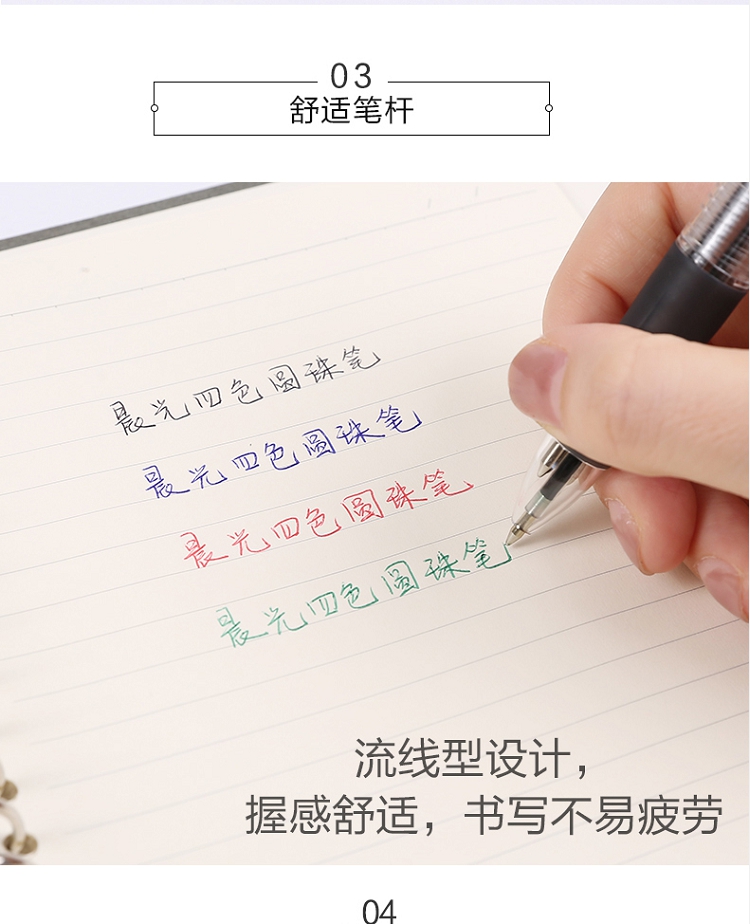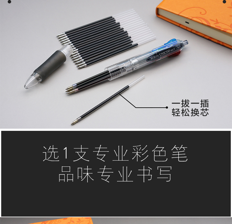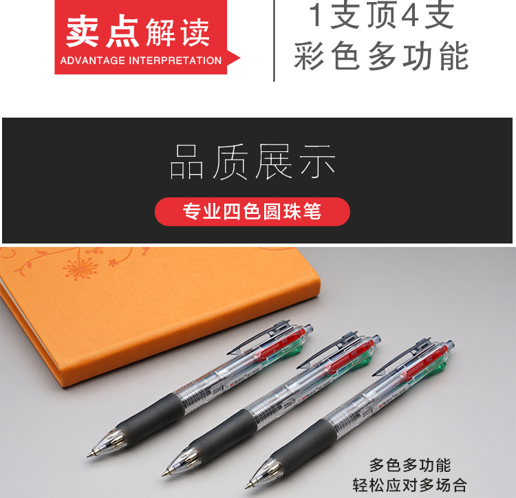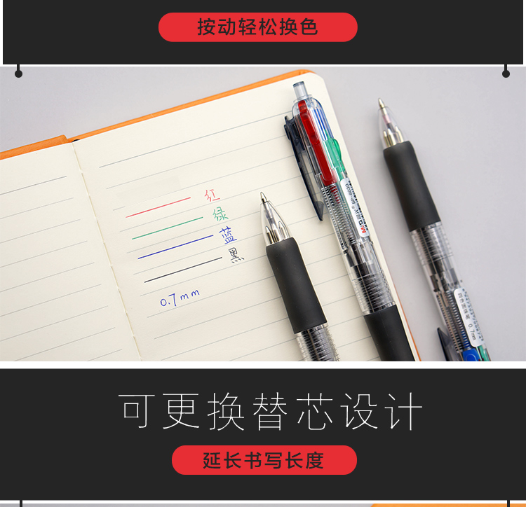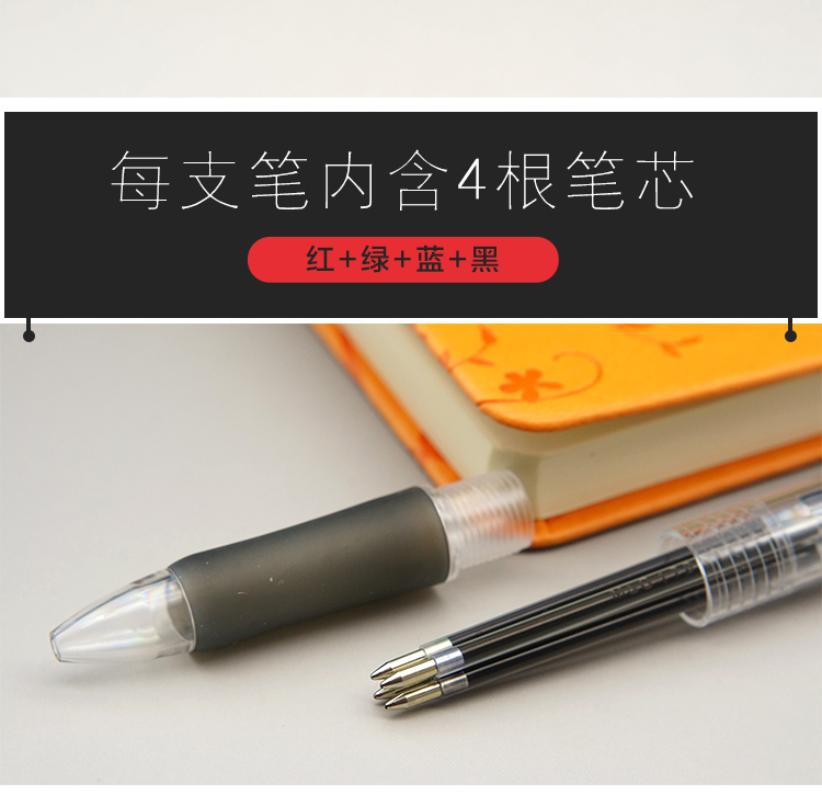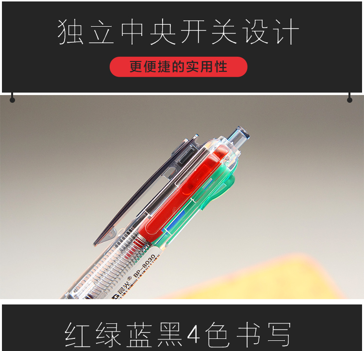 筆芯4種顏色,紅、藍(lán)、黑、綠,中央開關(guān)設(shè)計(jì) ?