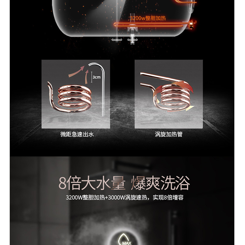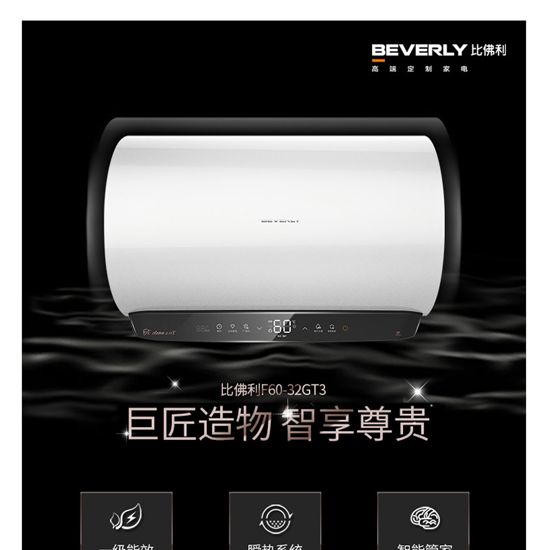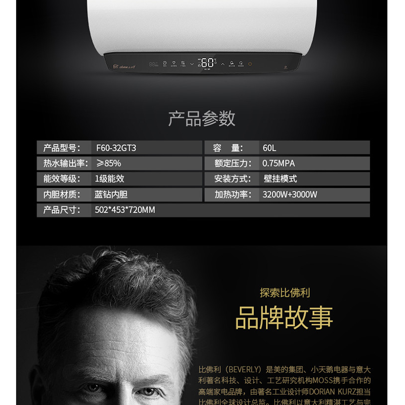 美的(Midea) F60-32GT3(HEY) 比佛利(BEVERLY)家用電熱水器 8倍增容3200W出水?dāng)嚯?60升