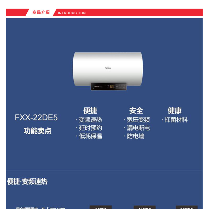 美的(Midea) F80-22DE5(HEY) 電熱水器漏電斷電變頻速熱寬屏變壓低耗保溫80升