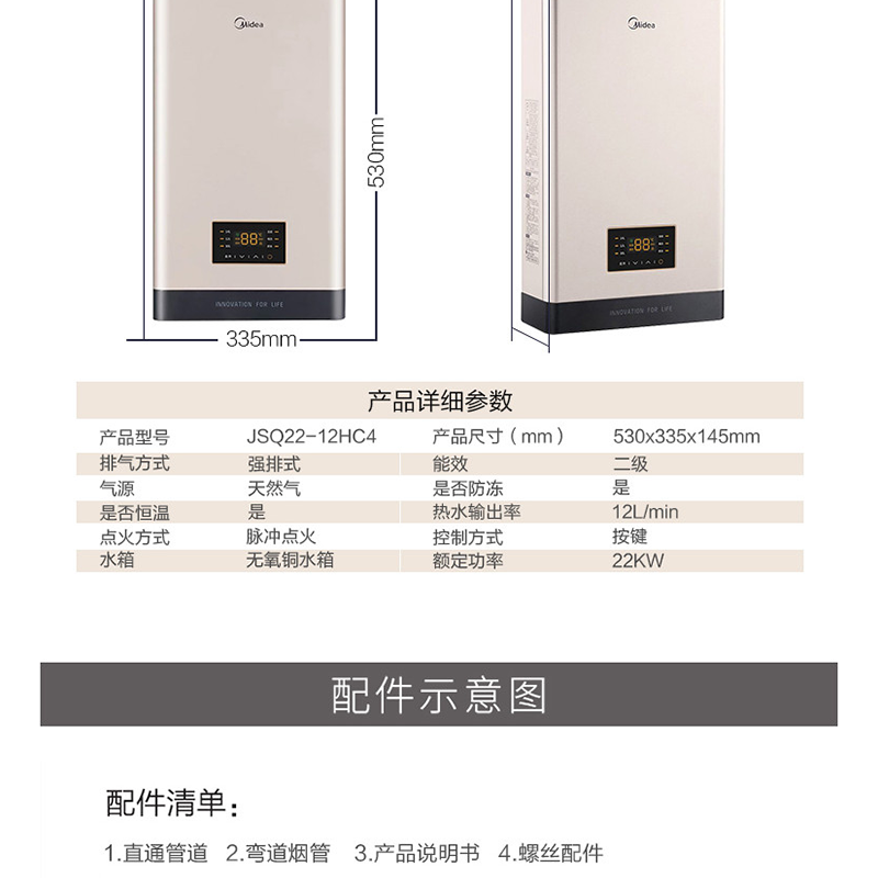 美的(Midea) JSQ20-10HC4 10升 三檔變升 穩(wěn)流恒溫 燃氣熱水器 天然氣
