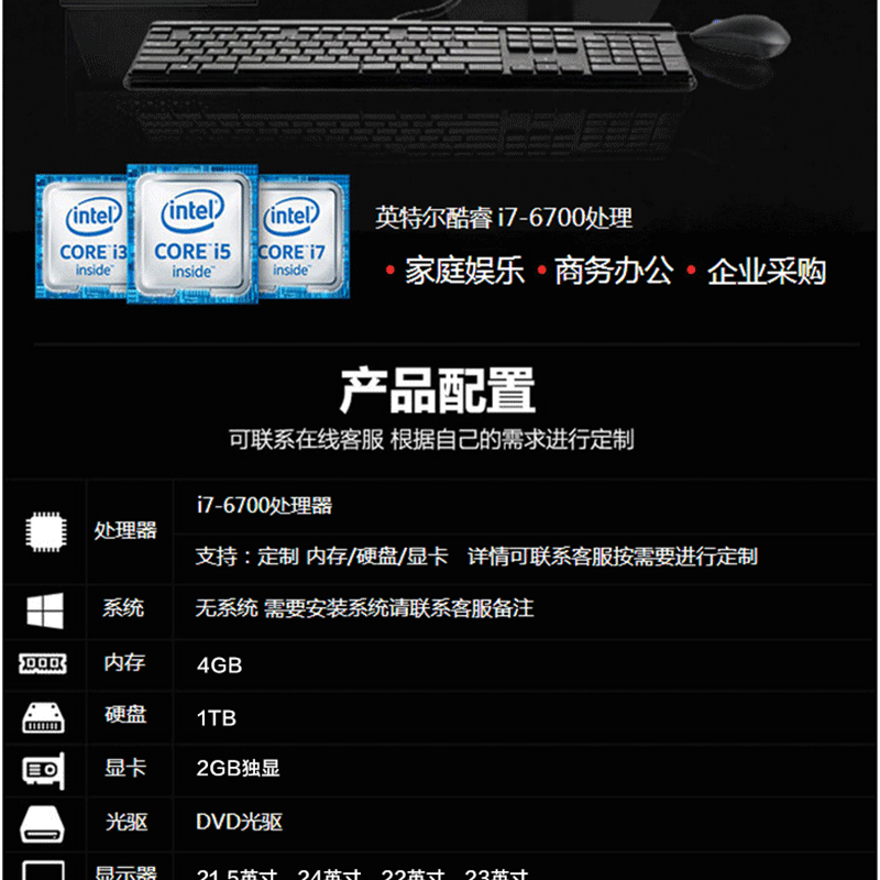 • i7-6700/4G/1T/21.5英寸/集顯 i7-6700/4G/1T/24英寸/集顯 i7-6700/4G/1T/22英寸/集顯 i7-6700/4G/1T/23英寸/集顯 i7-6700/4G/1T/21.5英寸/2G獨(dú)顯 i7-6700/4G/1T/24英寸/2G獨(dú)顯 i7-6700/4G/1T/22英寸/2G獨(dú)顯 i7-6700/4G/1T/23英寸/2G獨(dú)顯