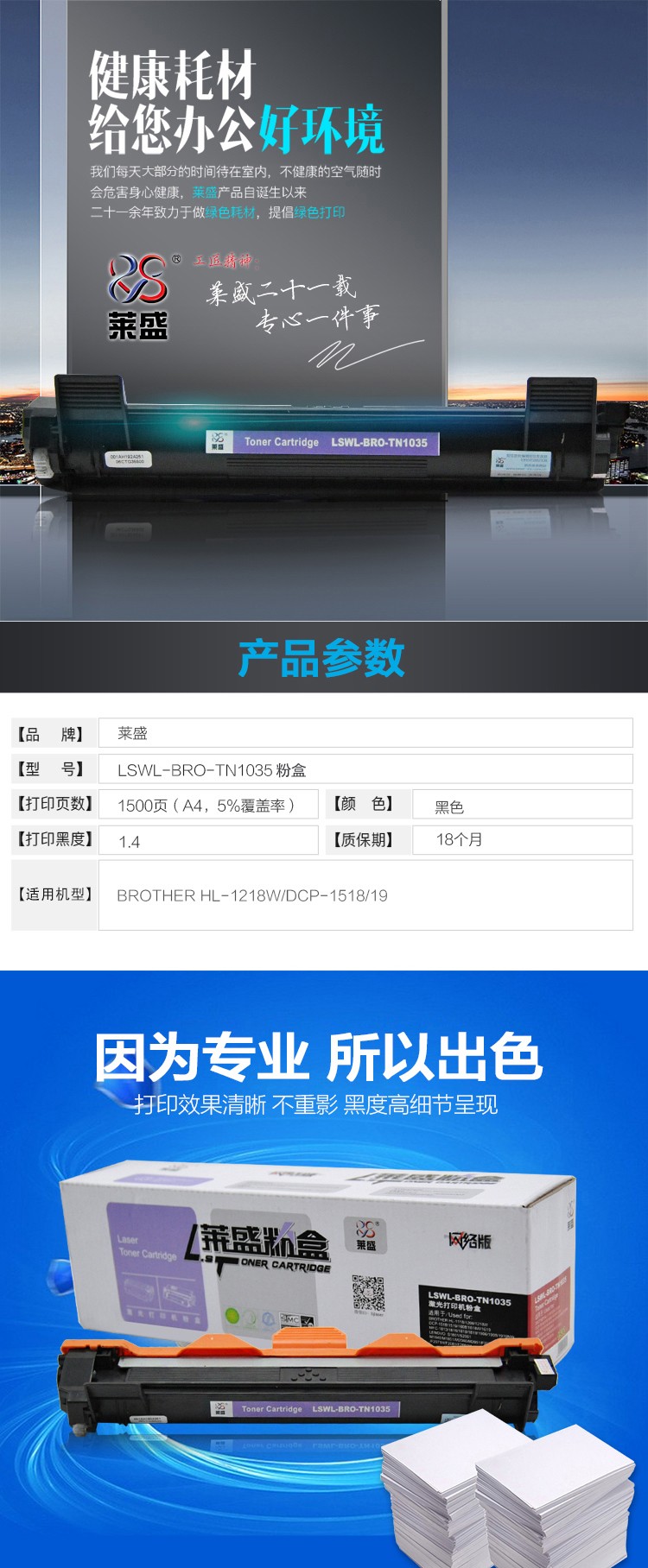 萊盛(laser) TN-1035 黑白打印機(jī)墨粉(黑色)