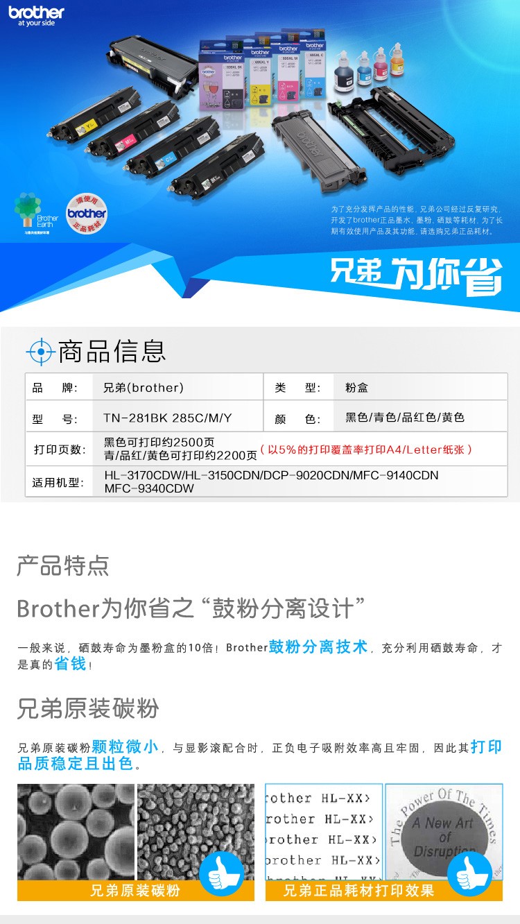 兄弟(brother) TN-285Y 彩色打印機(jī)墨粉(黃色)