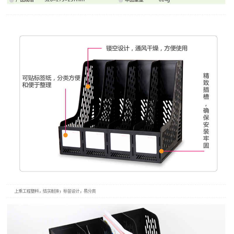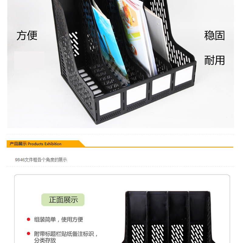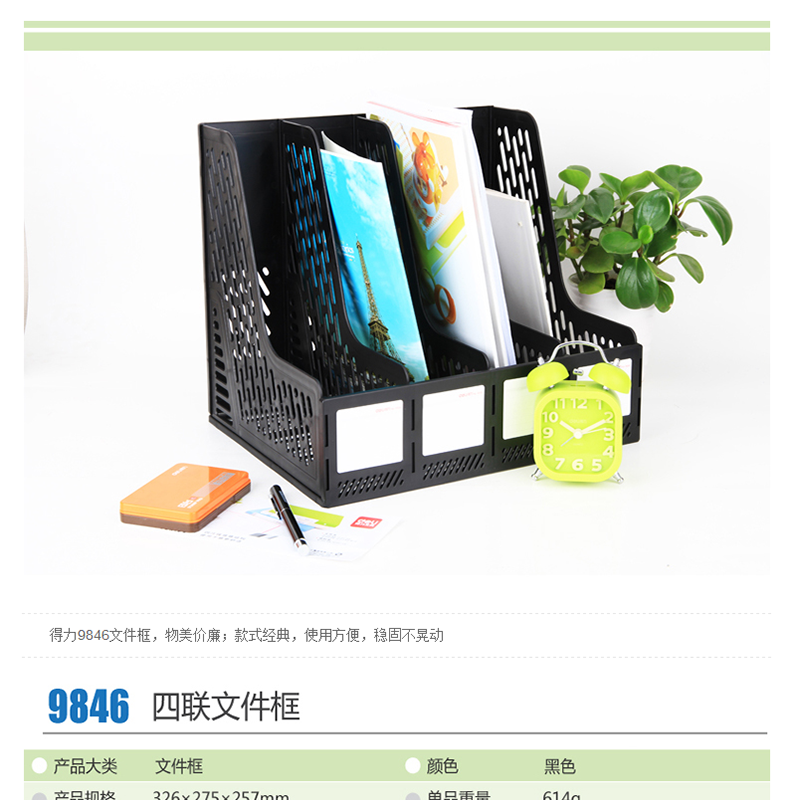 得力(deli) 9846 穩(wěn)固耐用 四聯(lián)文件框(黑色)