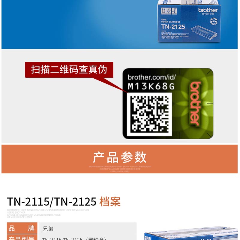 兄弟(brother) TN-2125 彩色打印機墨粉/高容(黑色)