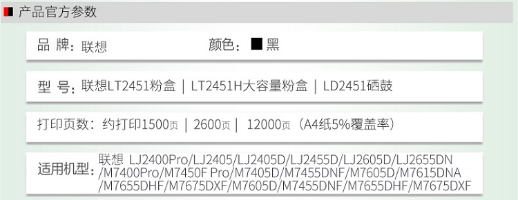 聯(lián)想(Lenovo) LT2451H 黑白打印機墨粉盒(黑色)
